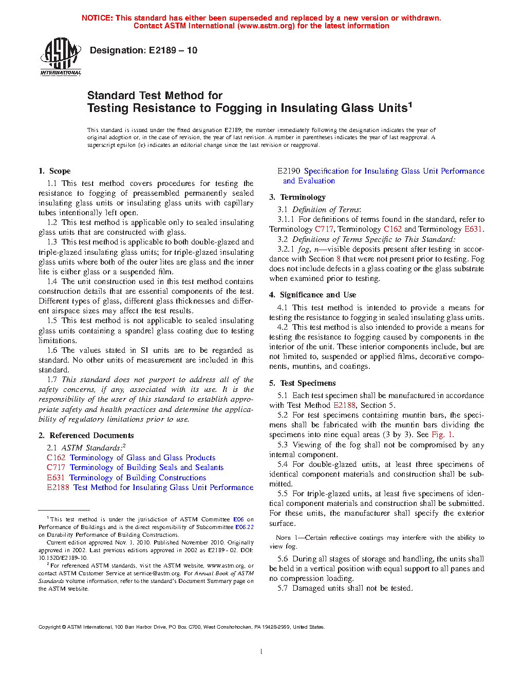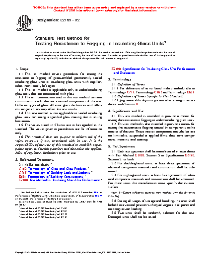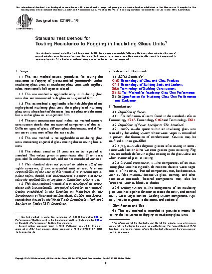 1.1 This test method covers procedures for testing the resistance to fogging of pre-assembled permanently sealed insulating glass units or insulating glass units with capillary tubes intentionally left open or closed.