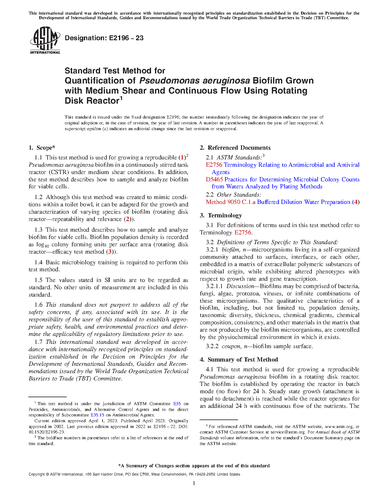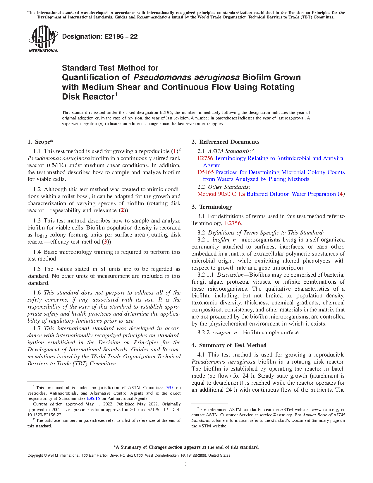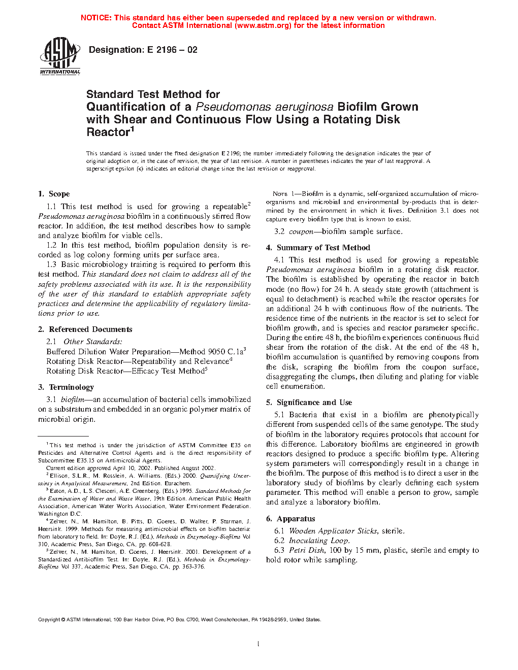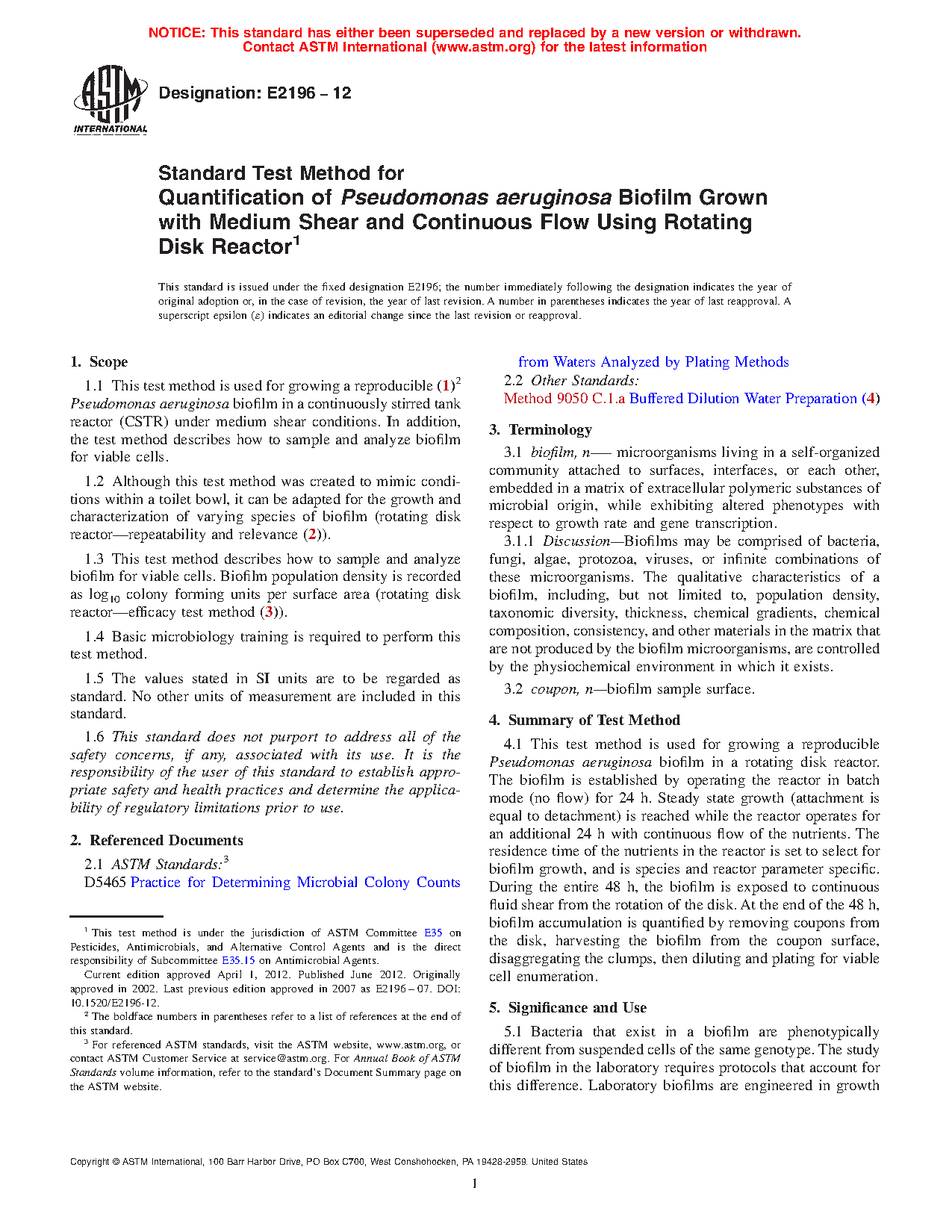 1.2 Although this test method was created to mimic conditions within a toilet bowl, it can be adapted for the growth and characterization of varying species of biofilm (rotating disk reactor—repeatability and relevance (2)).