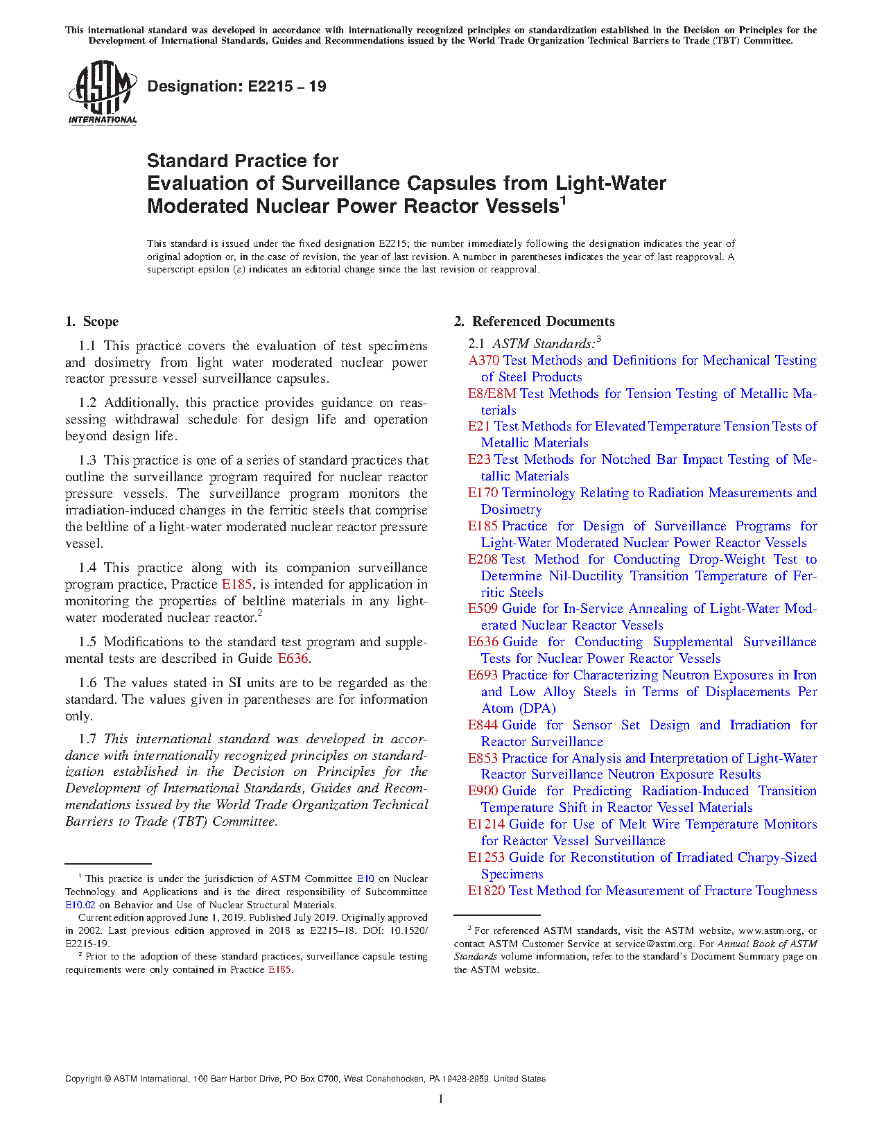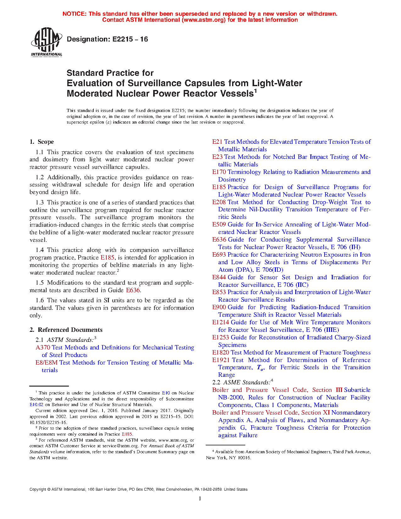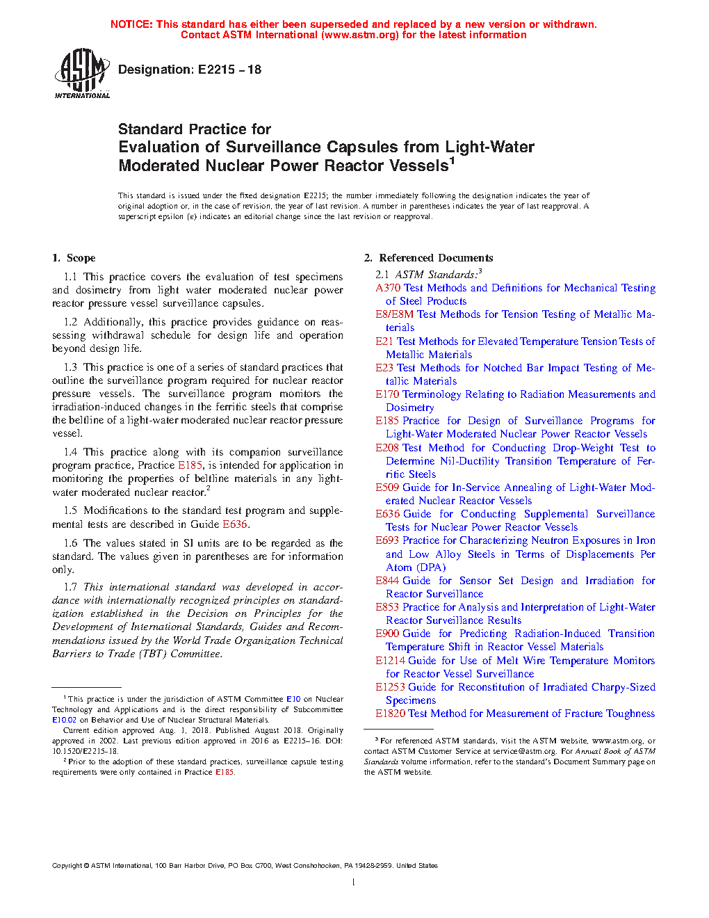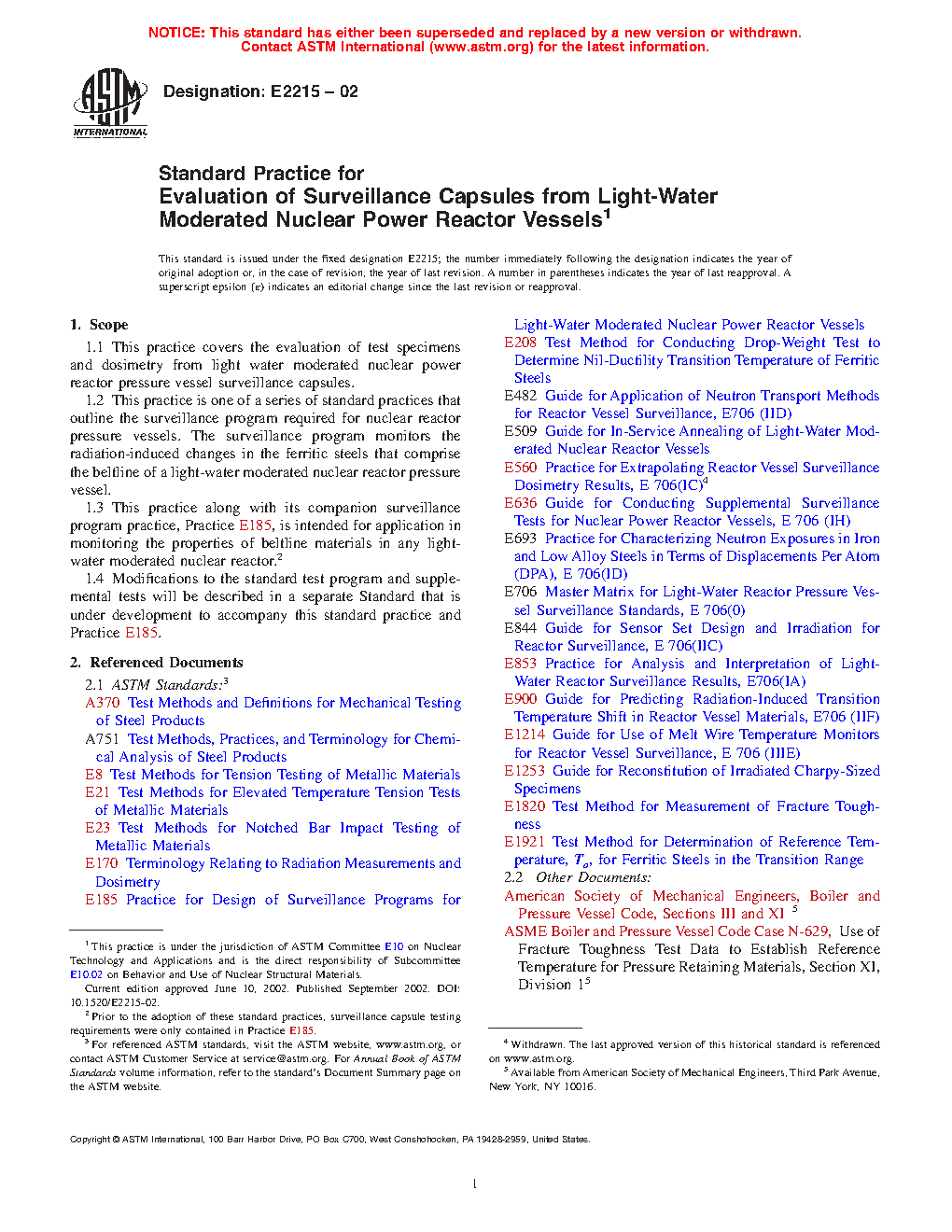 1.4 This practice along with its companion surveillance program practice, Practice E185, is intended for application in monitoring the properties of beltline materials in any light-water moderated nuclear reactor.2