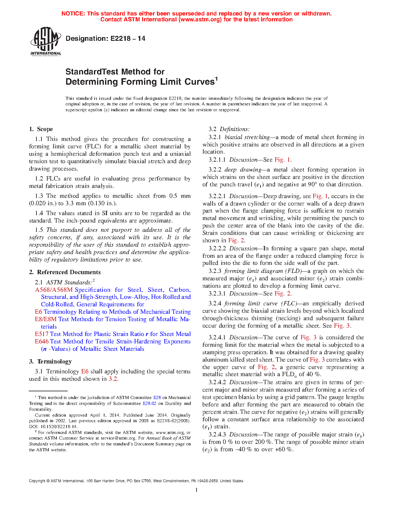 1.1 This test method gives the procedure for constructing a forming limit curve (FLC) for a metallic sheet material by using a hemispherical deformation punch test and a uniaxial tension test to quantitatively simulate biaxial stretching and deep drawing processes.