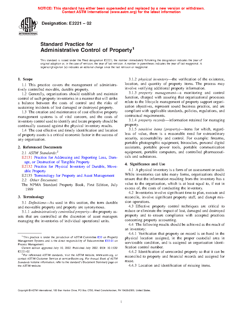 1.1 This practice covers the management of administratively controlled movable, durable property.