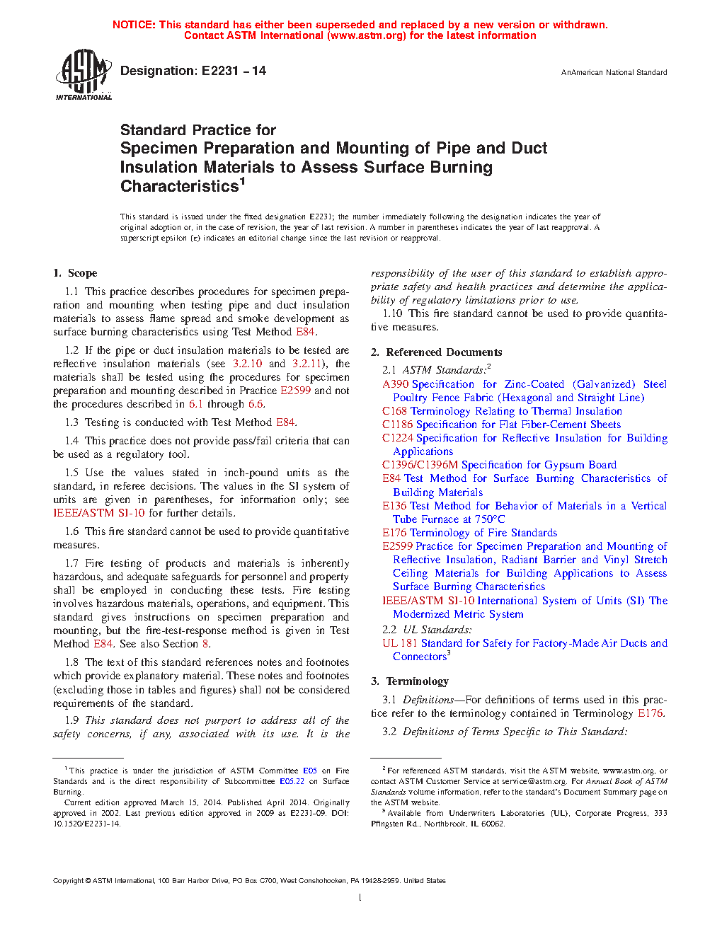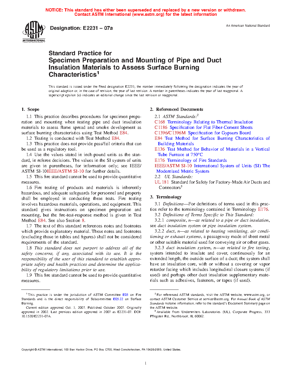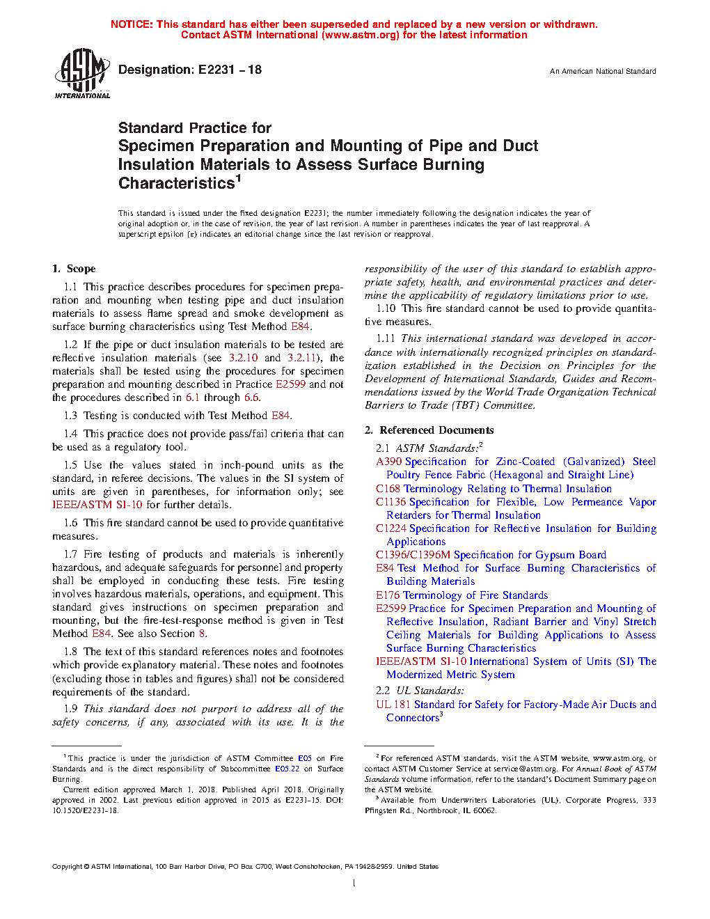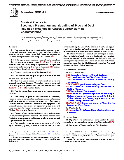 5.1 Pipe and duct insulation systems are often evaluated with Test Method E84 to comply with building or mechanical code requirements. This practice describes, in detail, specimen preparation and mounting procedures for single-component pipe or duct insulation systems and for multi-component pipe or duct insulation systems.