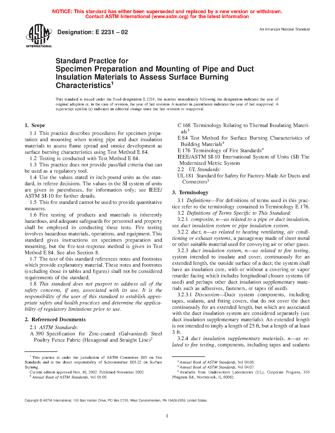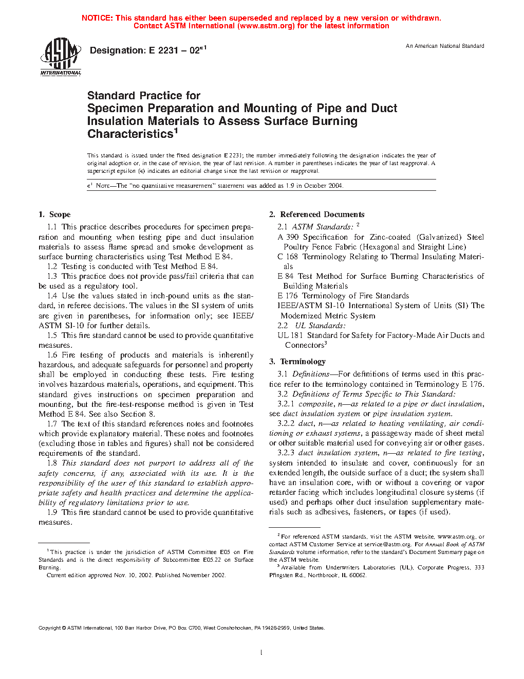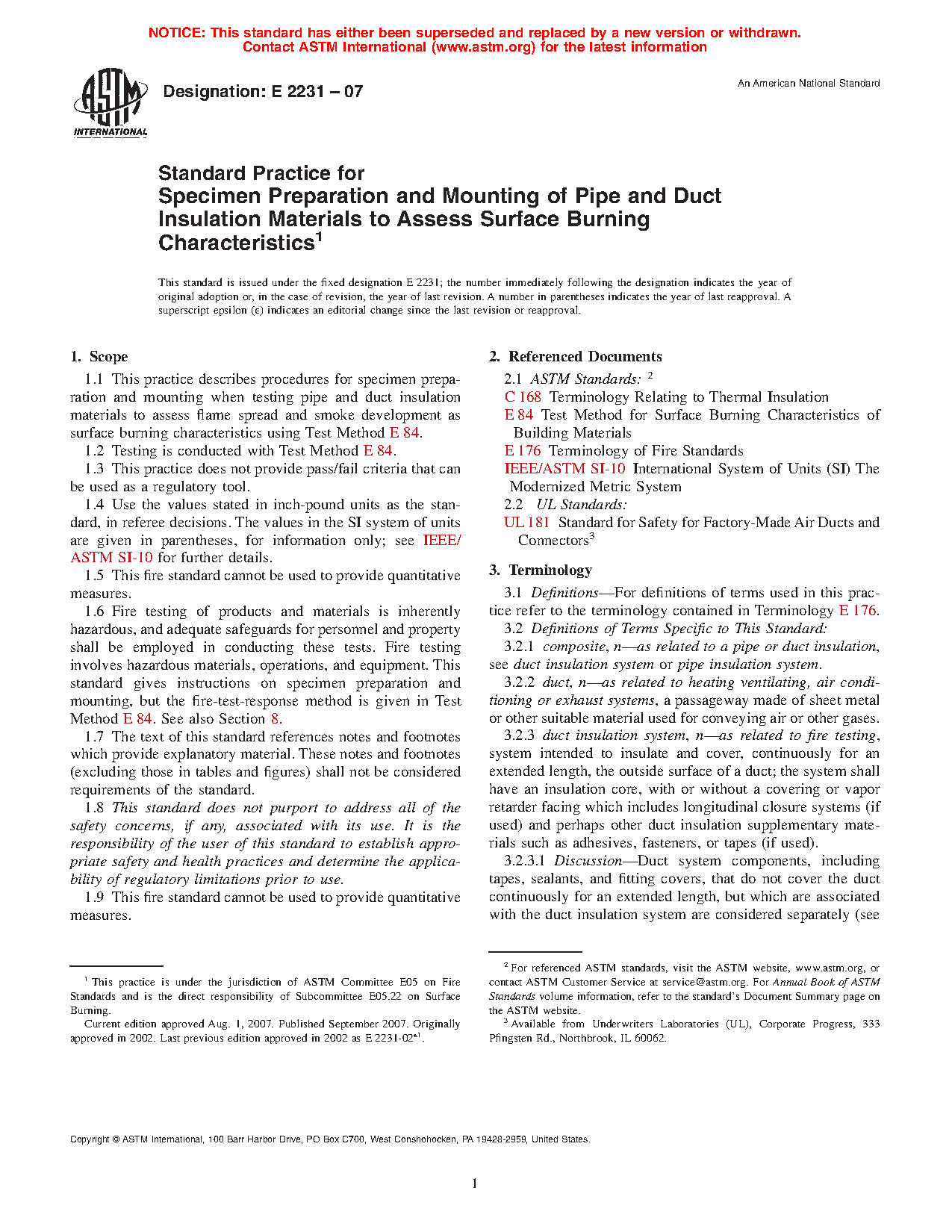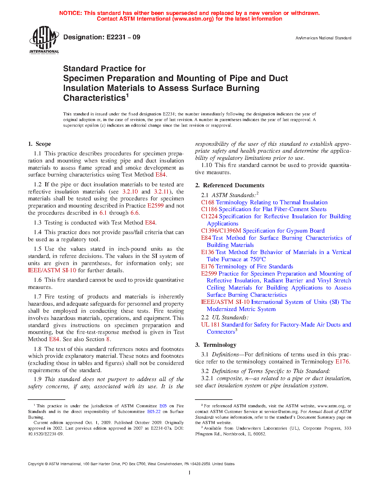 5.1 Pipe and duct insulation systems are often evaluated with Test Method E84 to comply with building or mechanical code requirements. This practice describes, in detail, specimen preparation and mounting procedures for single-component pipe or duct insulation systems and for multi-component pipe or duct insulation systems.