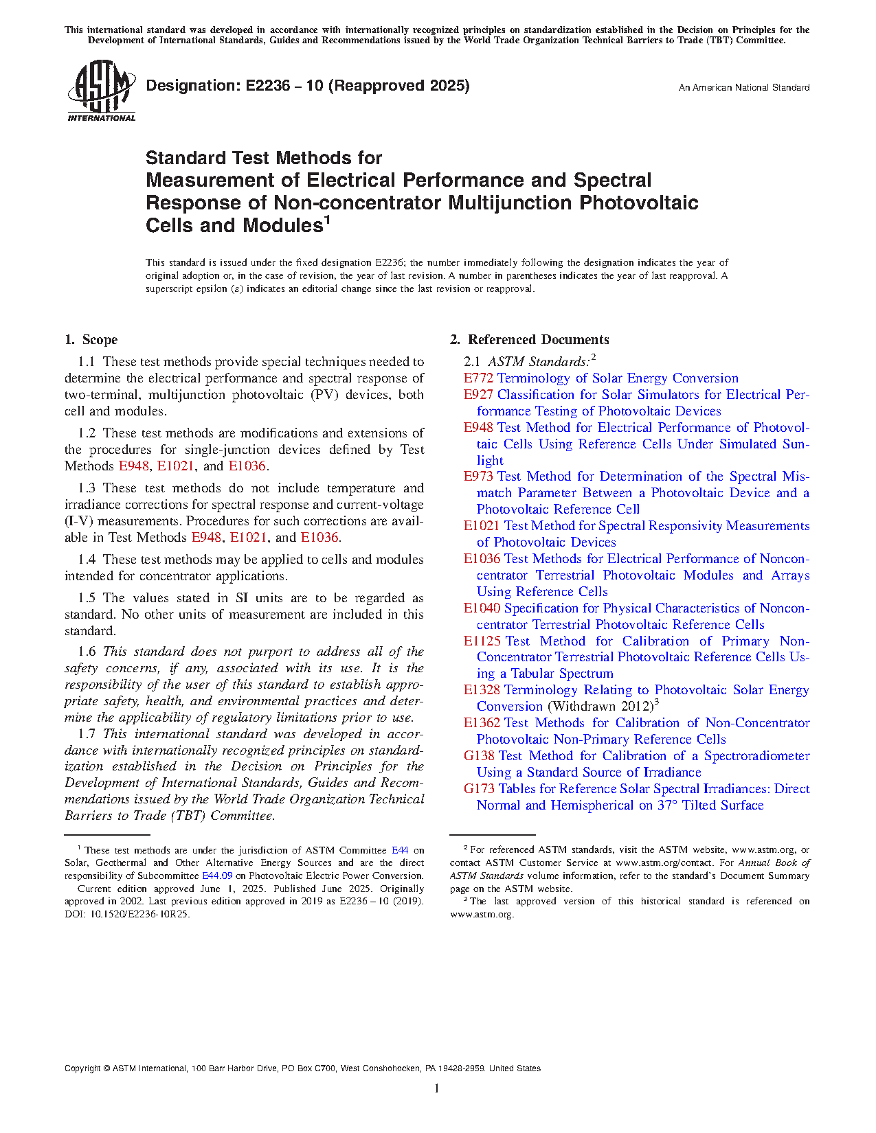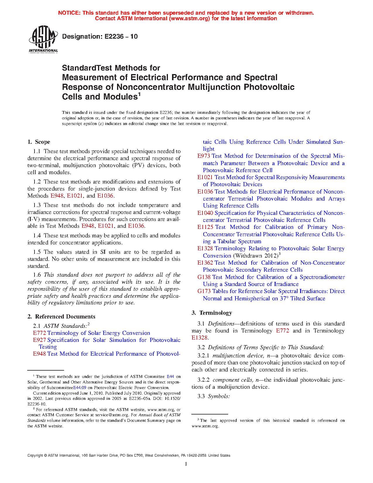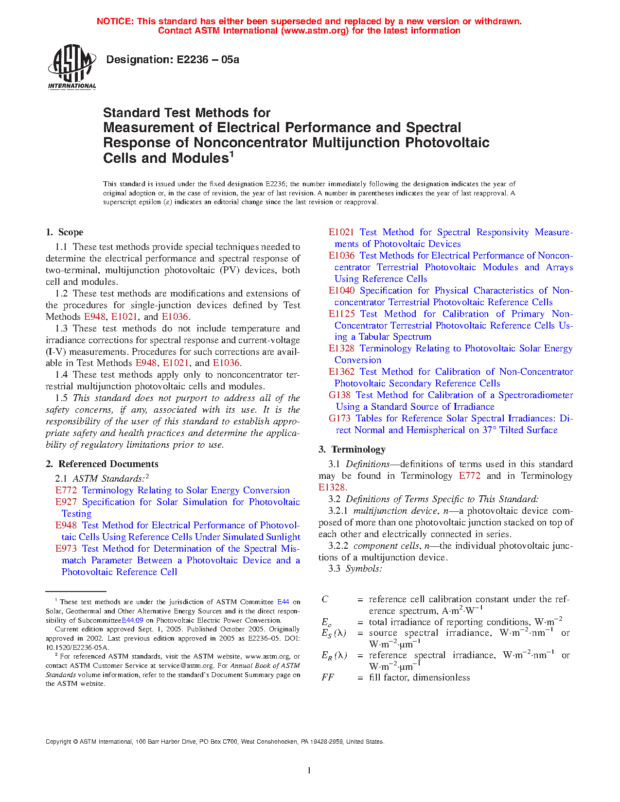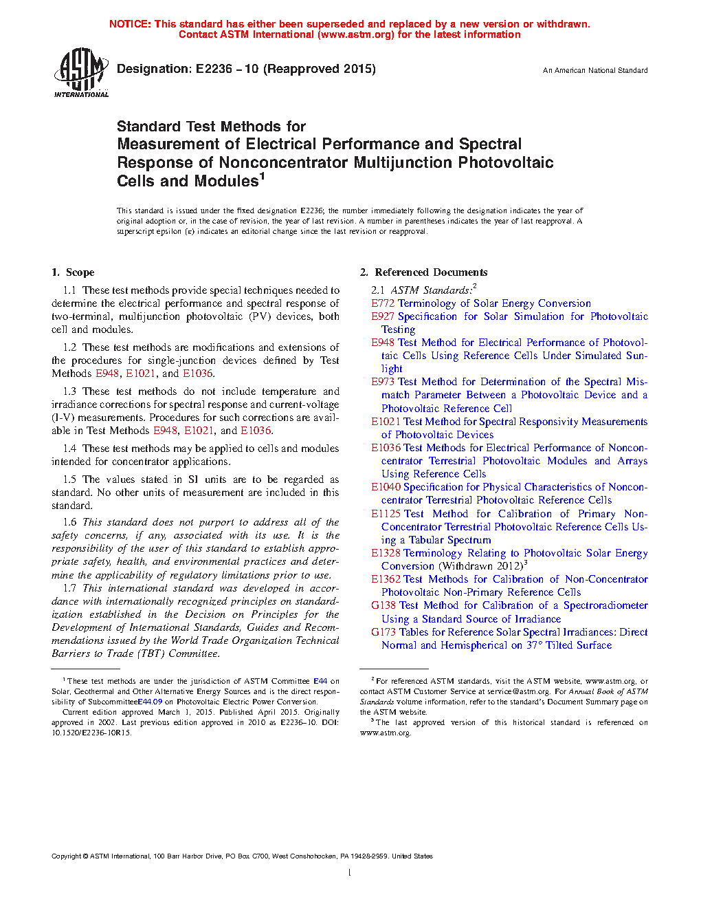 1.4 These test methods apply only to nonconcentrator terrestrial multijunction photovoltaic cells and modules.