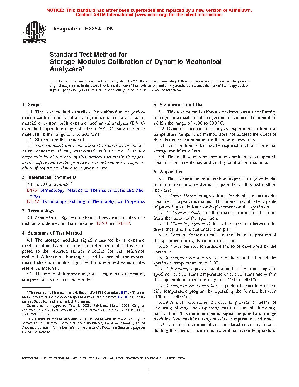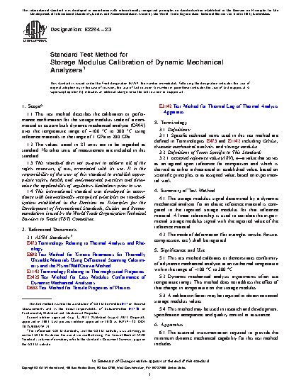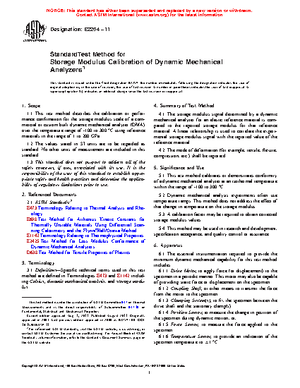 1.1 This test method describes the calibration or performance confirmation for the storage modulus scale of a commercial or custom built dynamic mechanical analyzer (DMA) over the temperature range of -100 to 300—C using reference materials in the range of 1 to 200 GPa.