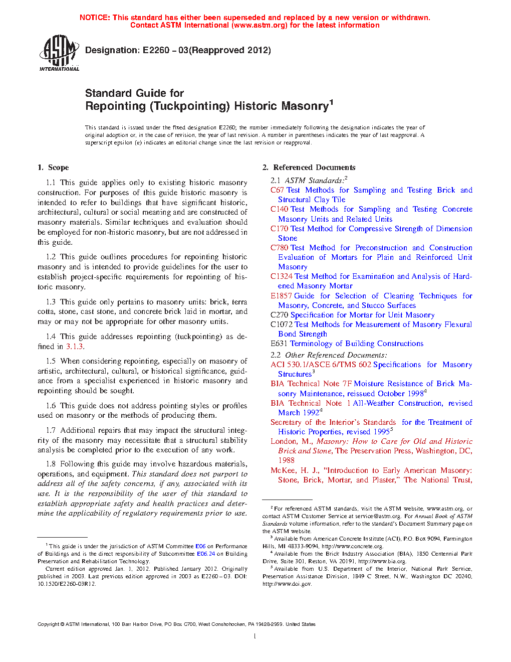1.2 This guide outlines procedures for repointing historic masonry and is intended to provide guidelines for the user to establish project-specific requirements for repointing of historic masonry.