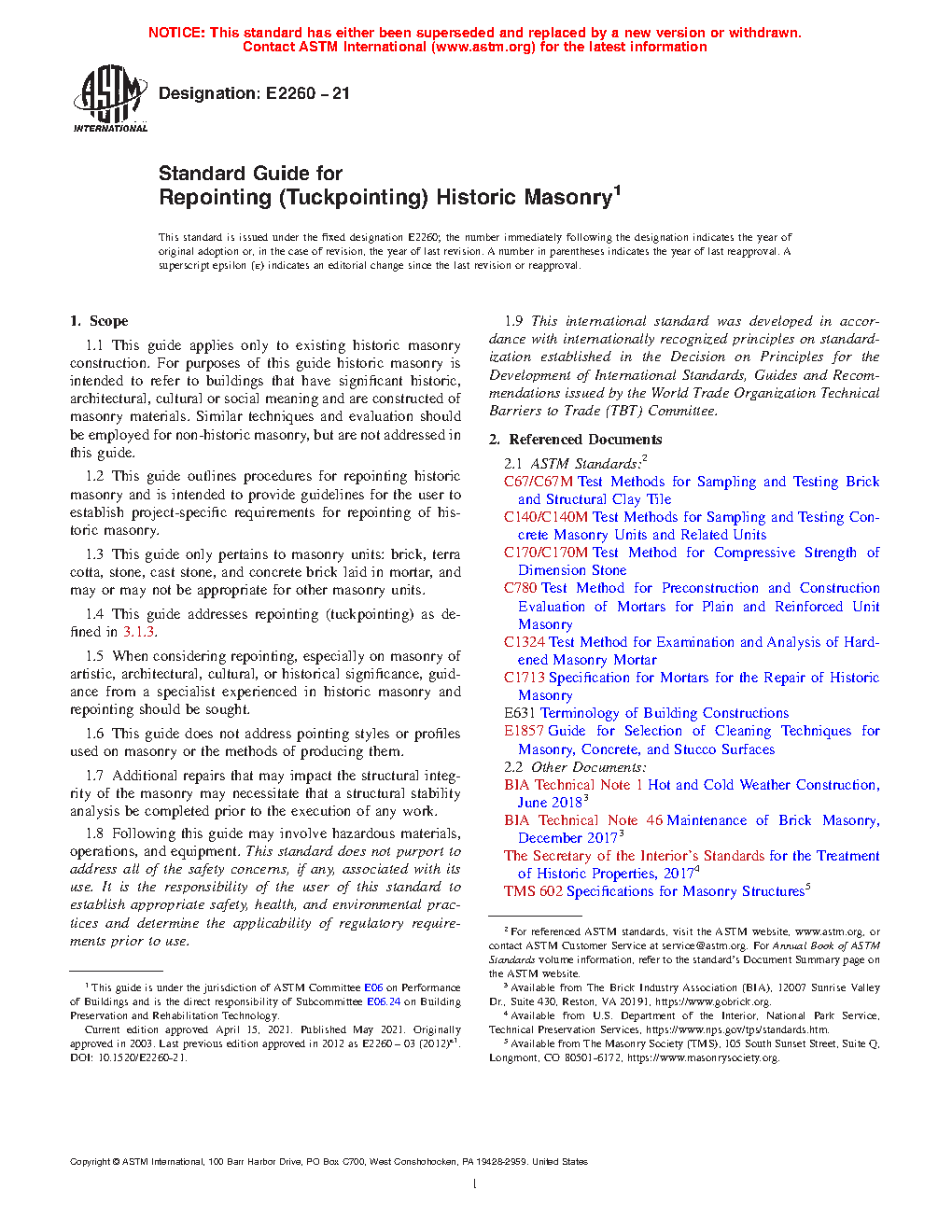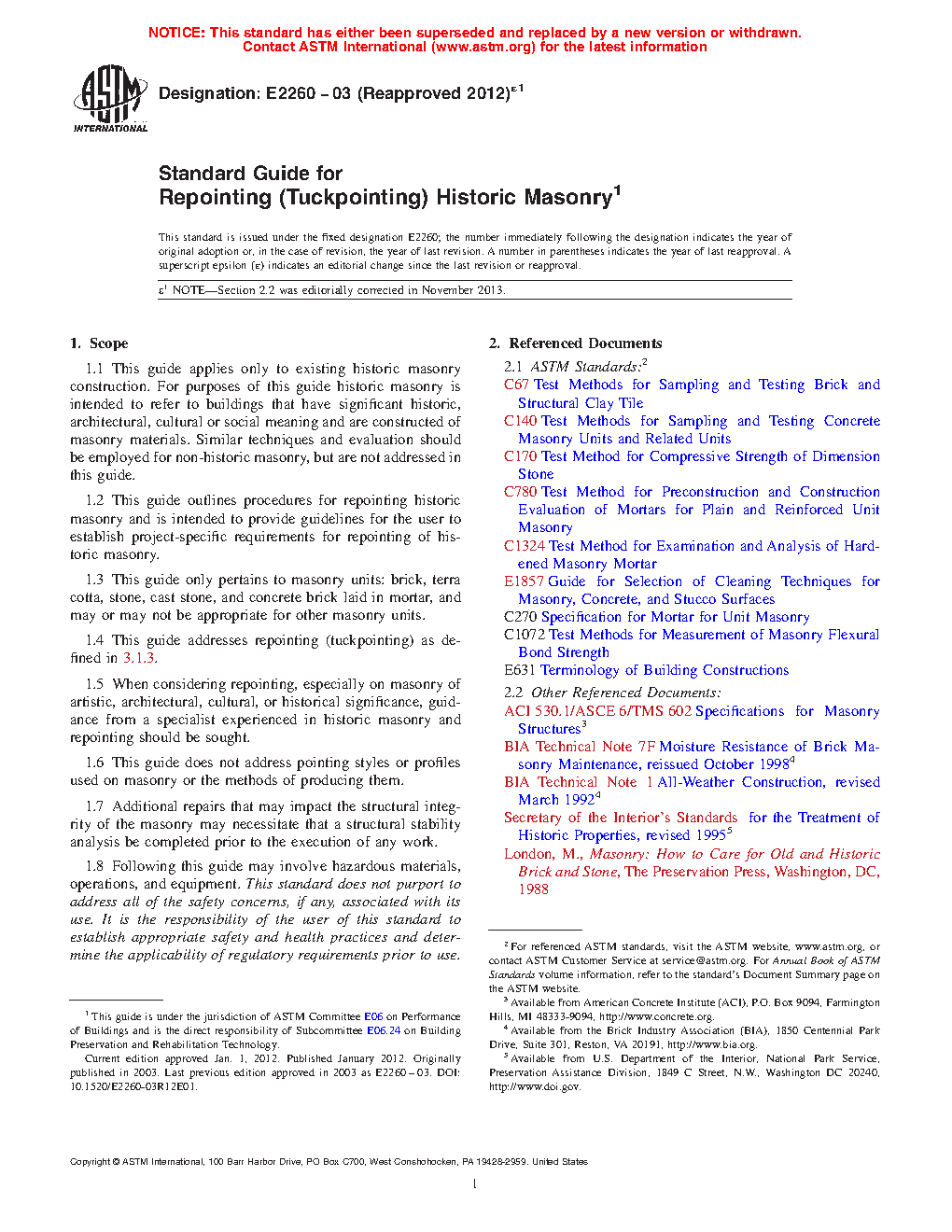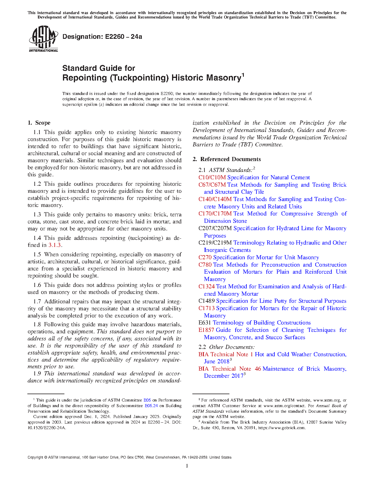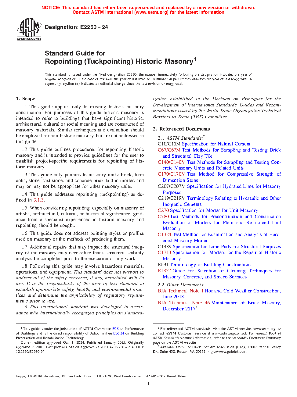 1.2 This guide outlines procedures for repointing historic masonry and is intended to provide guidelines for the user to establish project-specific requirements for repointing of historic masonry.