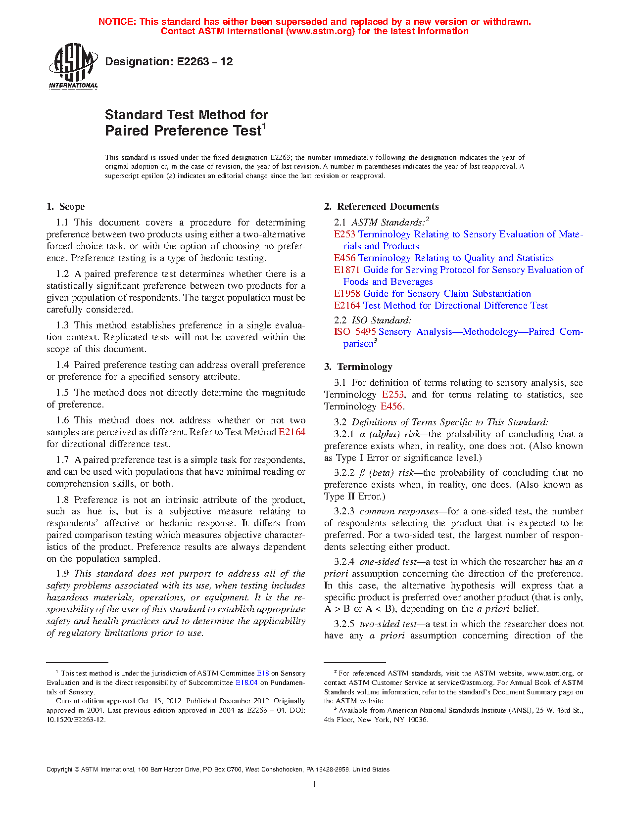 1.3 This method establishes preference in a single evaluation context. Replicated tests will not be covered within the scope of this document.