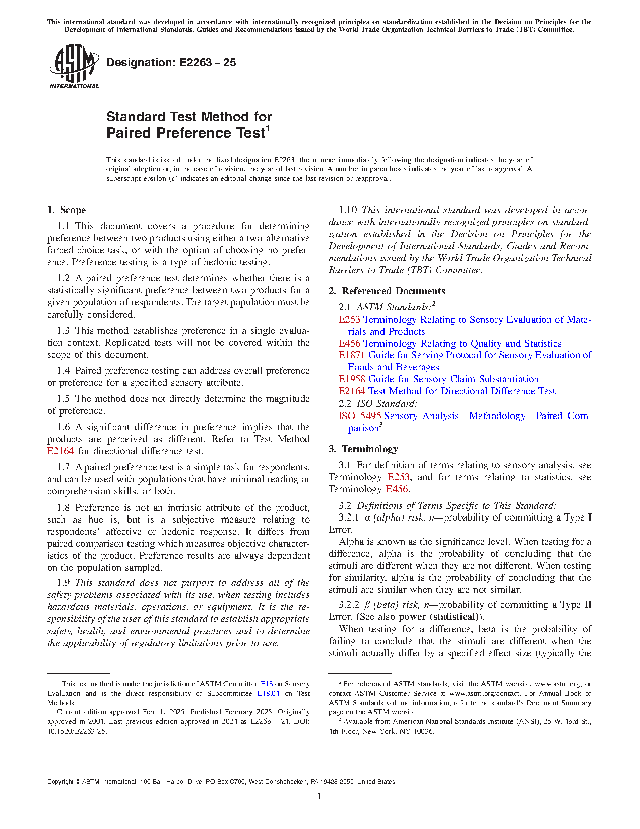 1.4 Paired preference testing can address overall preference or preference for a specified sensory attribute.