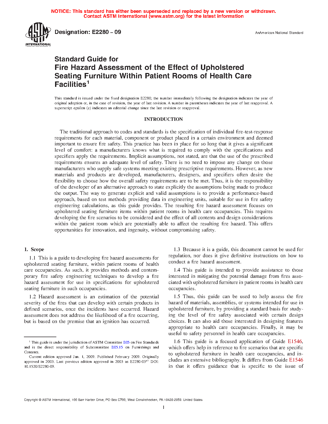 1.5 Thus, this guide can be used to help assess the fire hazard of materials, assemblies, or systems intended for use in upholstered furniture, by providing a standard basis for studying the level of fire safety associated with certain design choices. It can also aid those interested in designing features appropriate to health care occupancies. Finally, it may be useful to safety personnel in health care occupancies.
