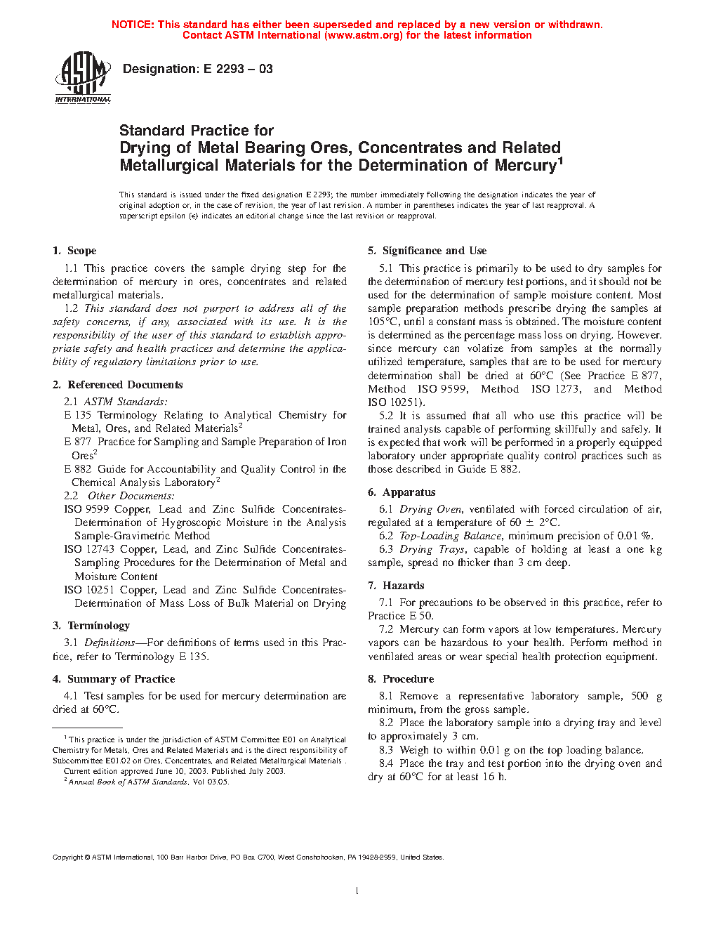 1.1 This practice covers the sample drying step for the determination of mercury in ores, concentrates, and related metallurgical materials.