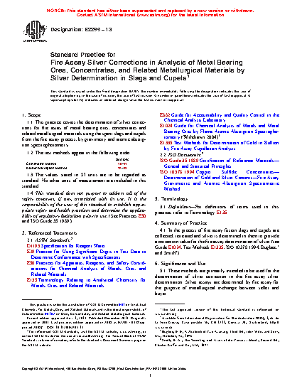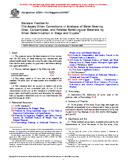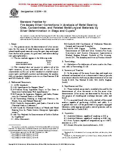 1.1 This practice covers the determination of silver corrections for fire assay of metal bearing ores, concentrates and related metallurgical materials using the spent slags and cupels from the fire assay process, by gravimetry and atomic absorption spectrophotometry.