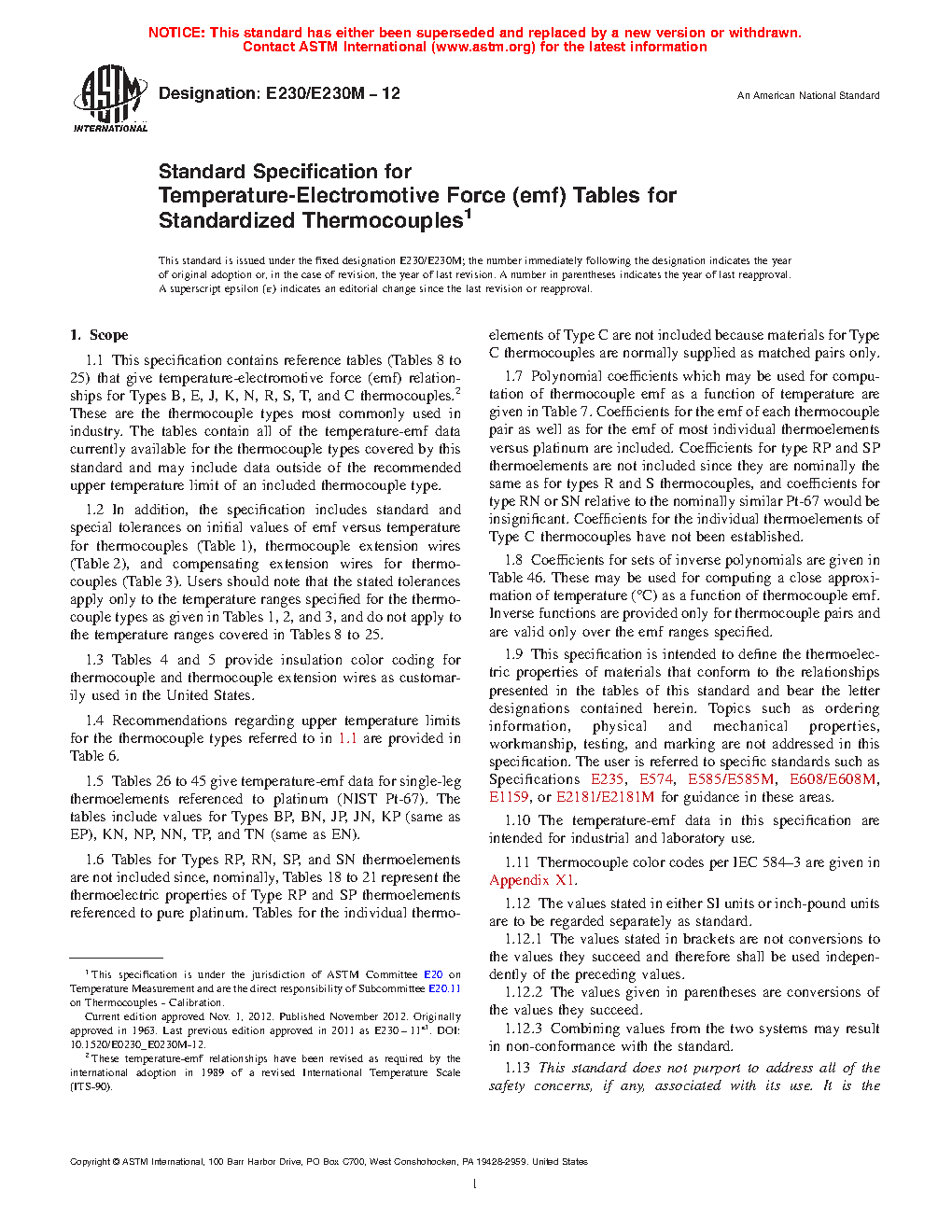 1.10 The temperature-emf data in this specification are intended for industrial and laboratory use.