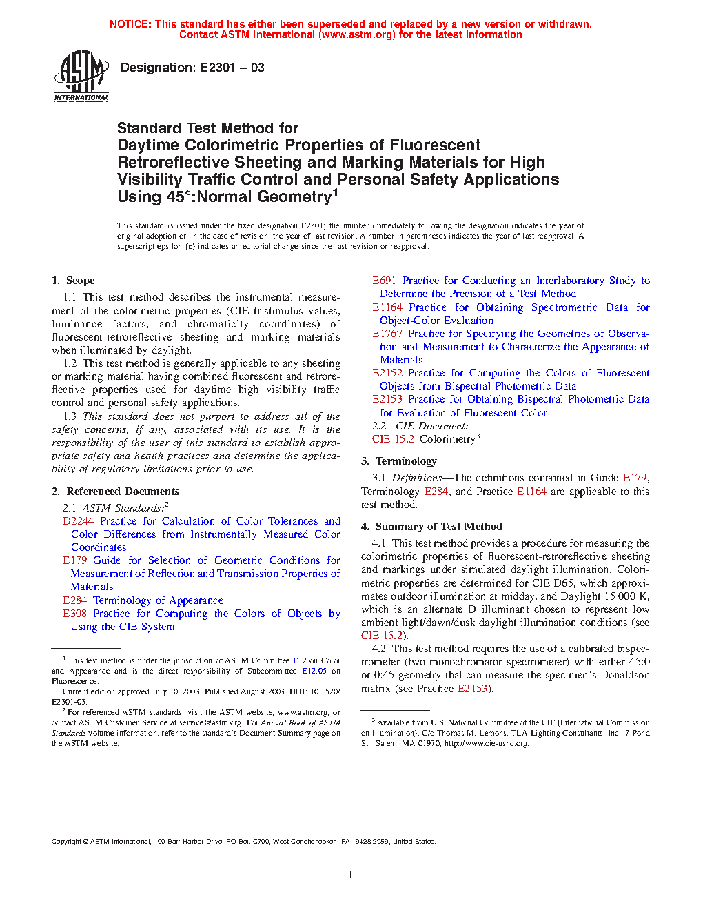 This test method is suitable for quality control testing of fluorescent-retroreflective sheeting and marking materials.