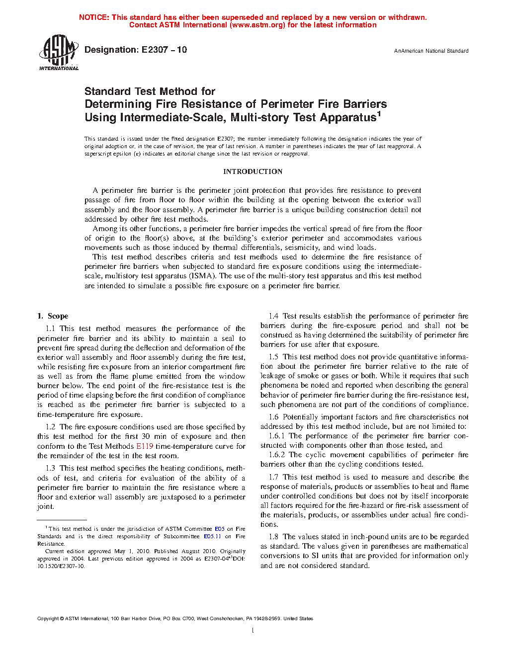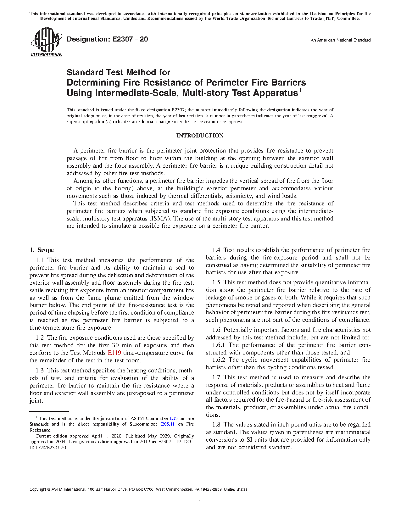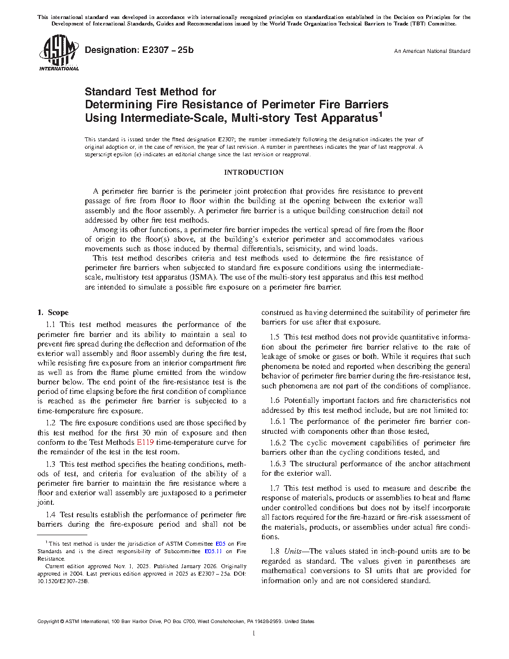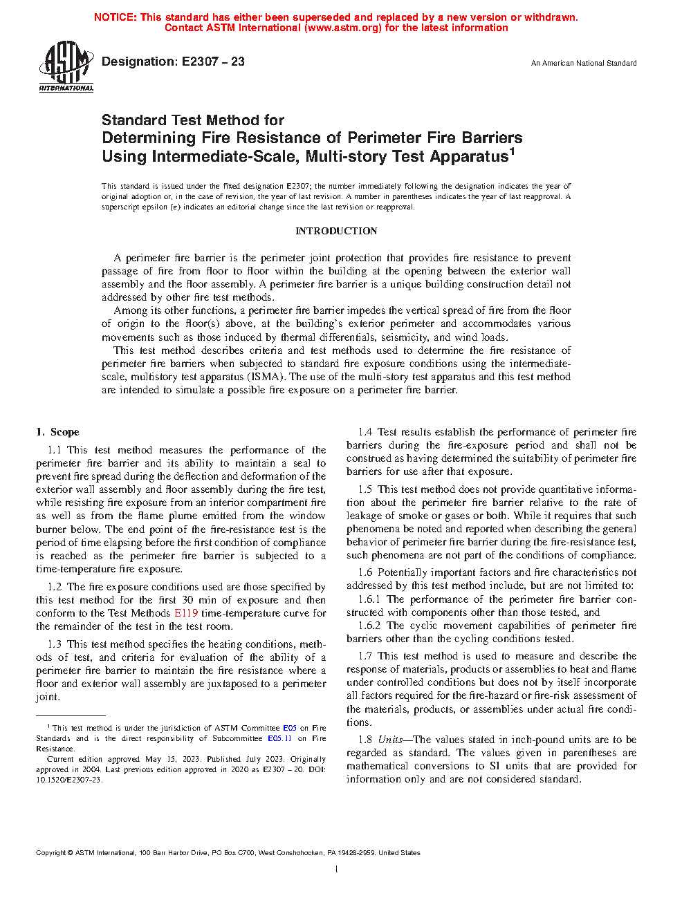 1.3 This test method specifies the heating conditions, methods of test, and criteria for evaluation of the ability of a perimeter fire barrier to maintain the fire resistance where a floor and exterior wall assembly are juxtaposed to a perimeter joint.