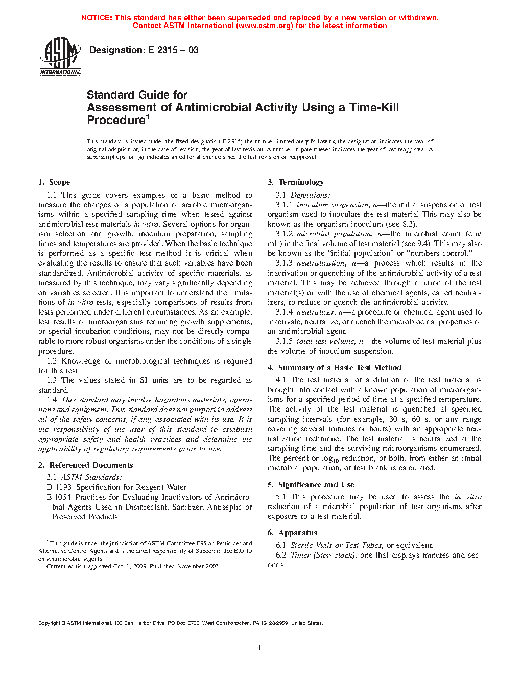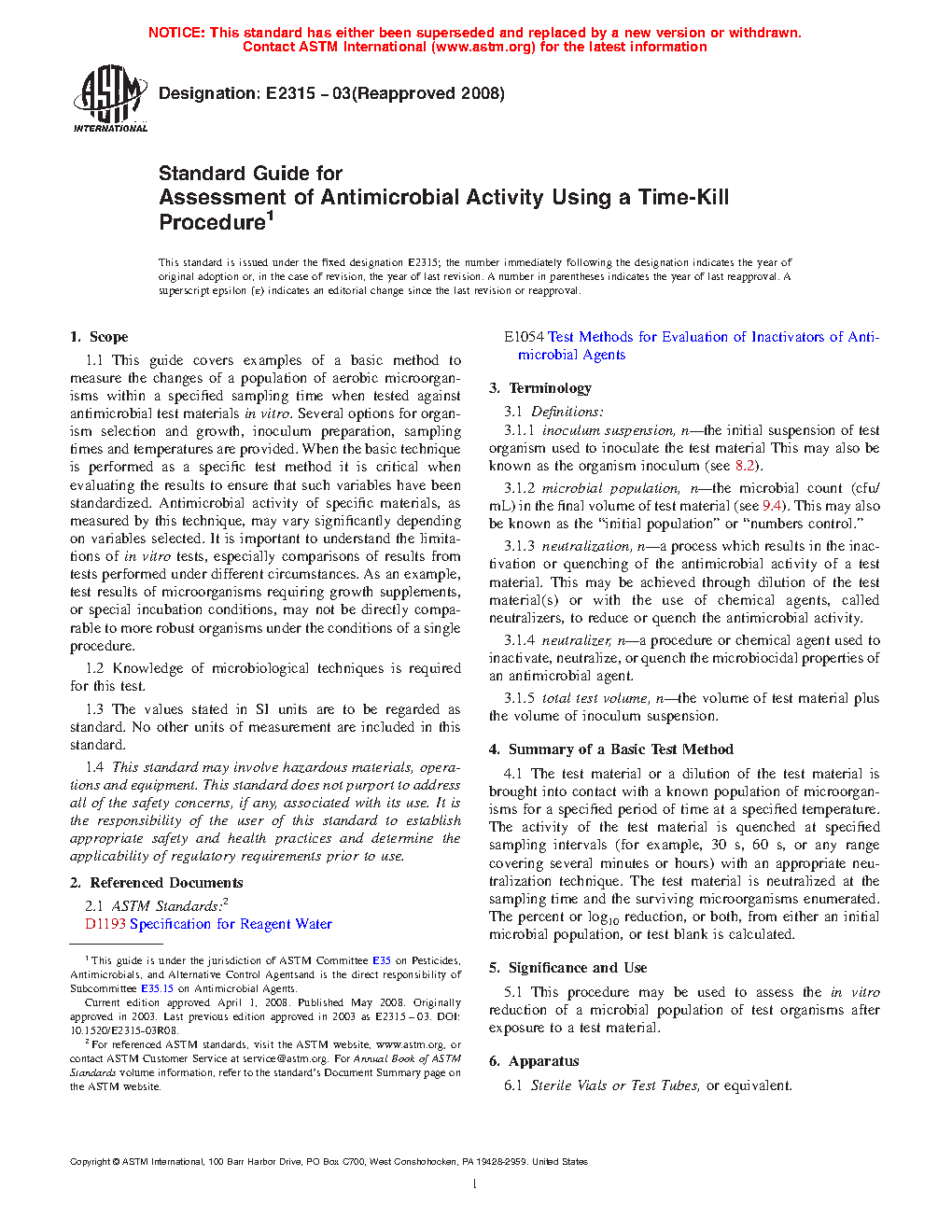 5.1 This procedure may be used to assess the in vitro reduction of a microbial population of test organisms after exposure to a test material.