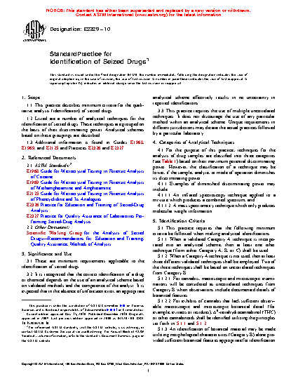 1.1 This practice describes minimum criteria for the qualitative analysis (identification) of seized drugs.