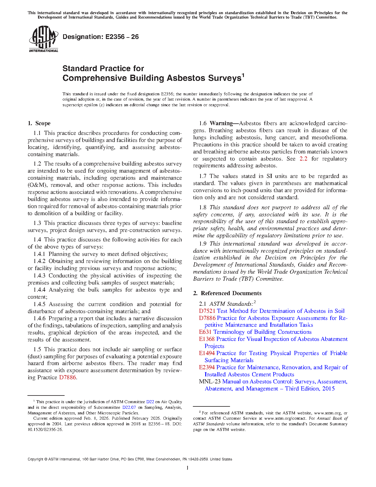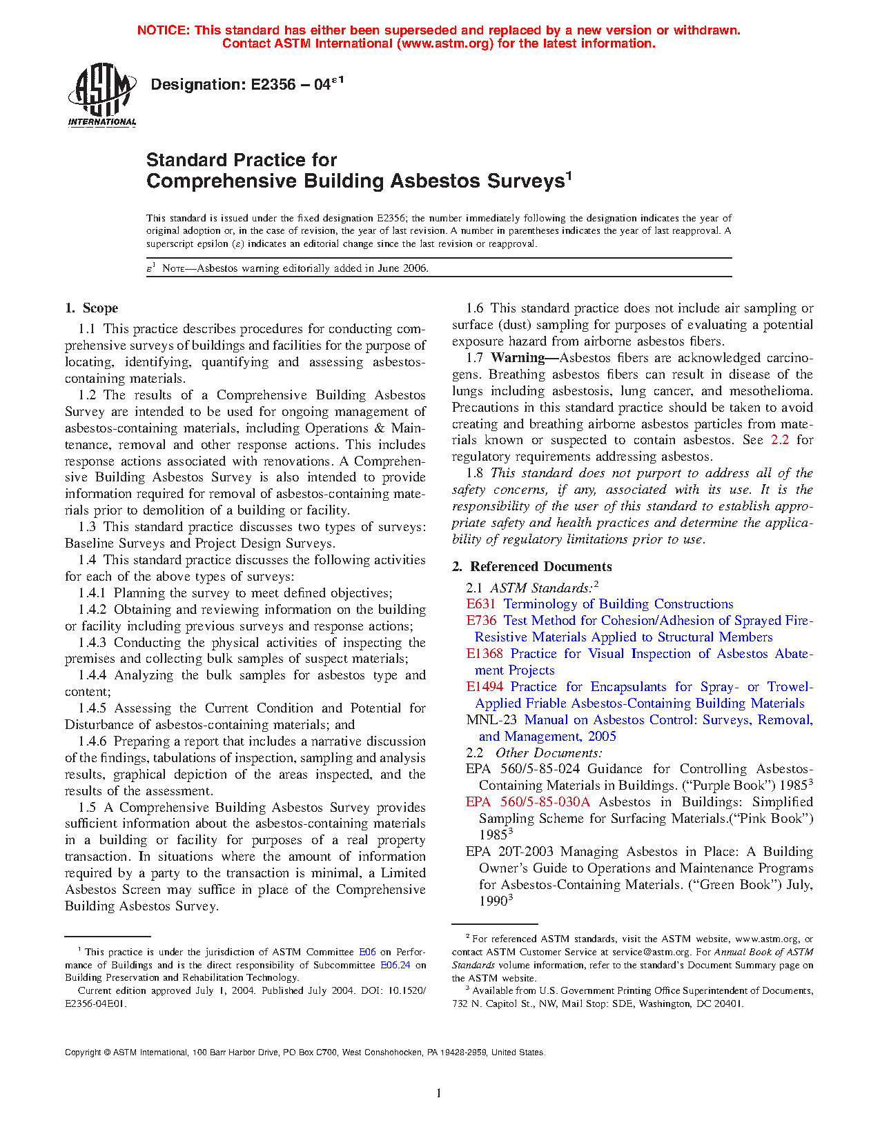 4.3 The inter-relationships among the three types of surveys and with other ASTM asbestos control standards is shown in Fig. 1.