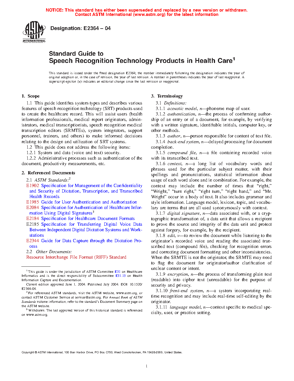 1.1 This guide identifies system types and describes various features of speech recognition technology (SRT) products used to create the healthcare record. This will assist users (health information professionals, medical report originators, administrators, medical transcriptionists, speech recognition medical transcription editors (SRMTEs), system integrators, support personnel, trainers, and others) to make informed decisions relating to the design and utilization of SRT systems.