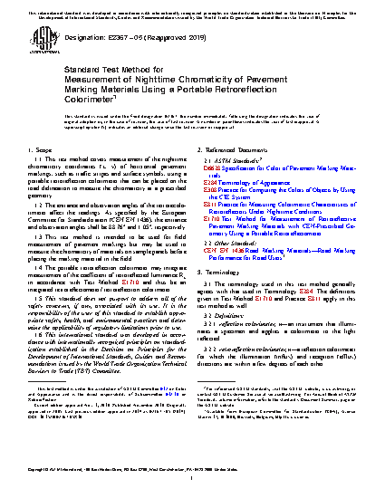 1.3 This test method is intended to be used for field measurement of pavement markings but may be used to measure the chromaticity of materials on sample panels before placing the marking material in the field.