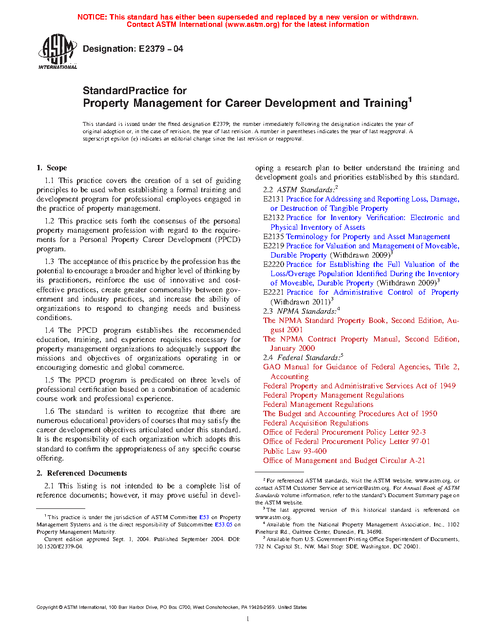 1.2 This practice sets forth the consensus of the personal property management profession with regard to the requirements for a Personal Property Career Development (PPCD) program.