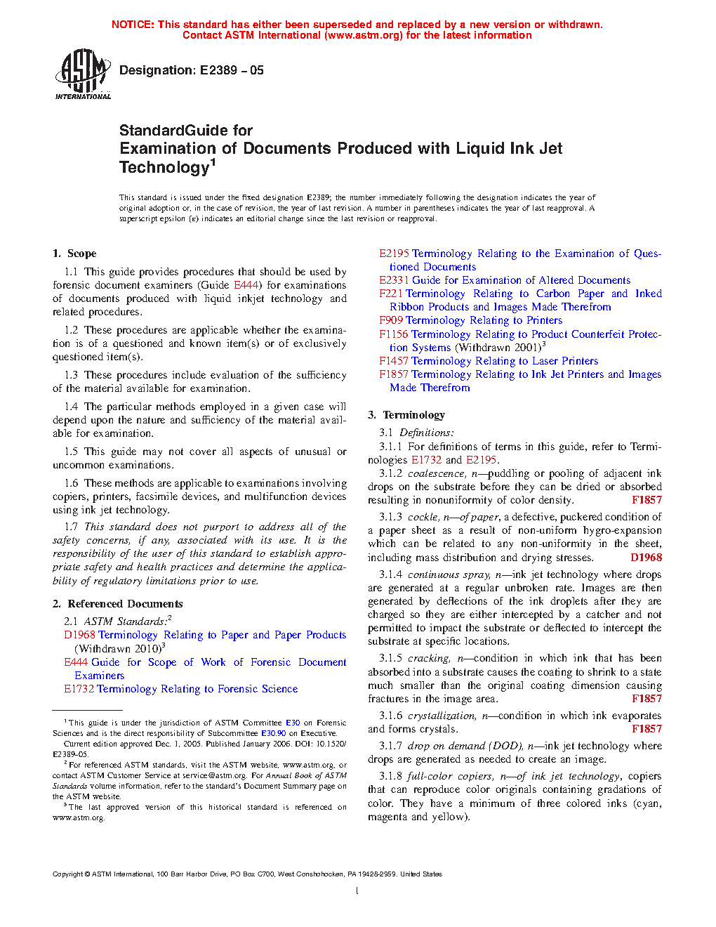 1.1 This guide provides procedures that should be used by forensic document examiners (Guide E 444) for examinations of documents produced with liquid inkjet technology and related procedures.