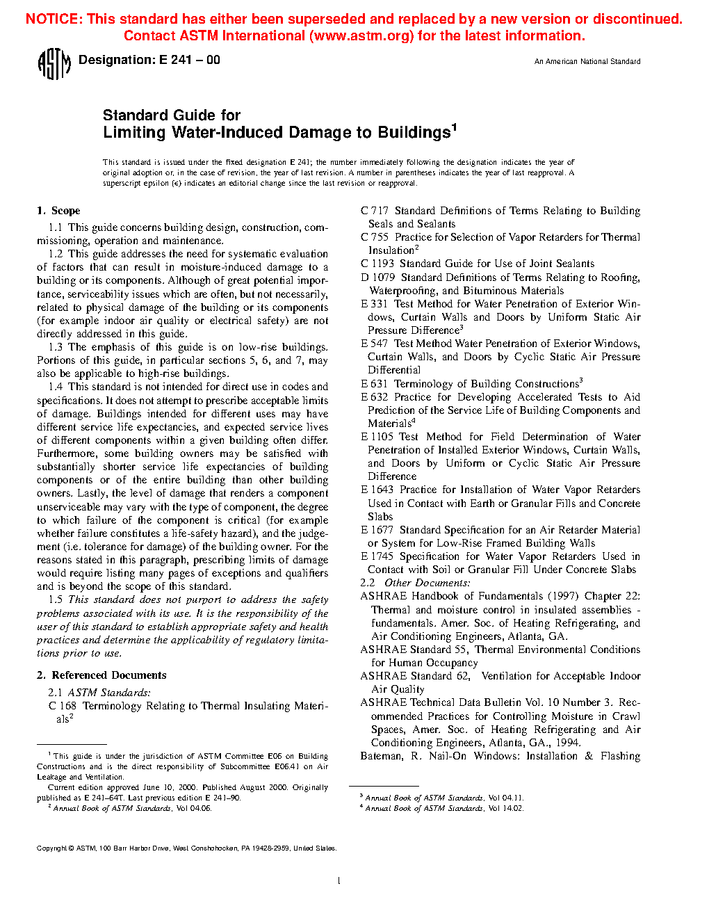 1.4 This guide is not intended for direct use in codes and specifications. It does not attempt to prescribe acceptable limits of damage. Buildings intended for different uses may have different service life expectancies, and expected service lives of different components within a given building often differ. Furthermore, some building owners may be satisfied with substantially shorter service life expectancies of building components or of the entire building than other building owners. Lastly, the level of damage that renders a component unserviceable may vary with the type of component, the degree to which failure of the component is critical (for example, whether failure constitutes a life-safety hazard), and the judgement (that is, tolerance for damage) of the building owner. For the reasons stated in this paragraph, prescribing limits of damage would require listing many pages of exceptions and qualifiers and is beyond the scope of this guide.