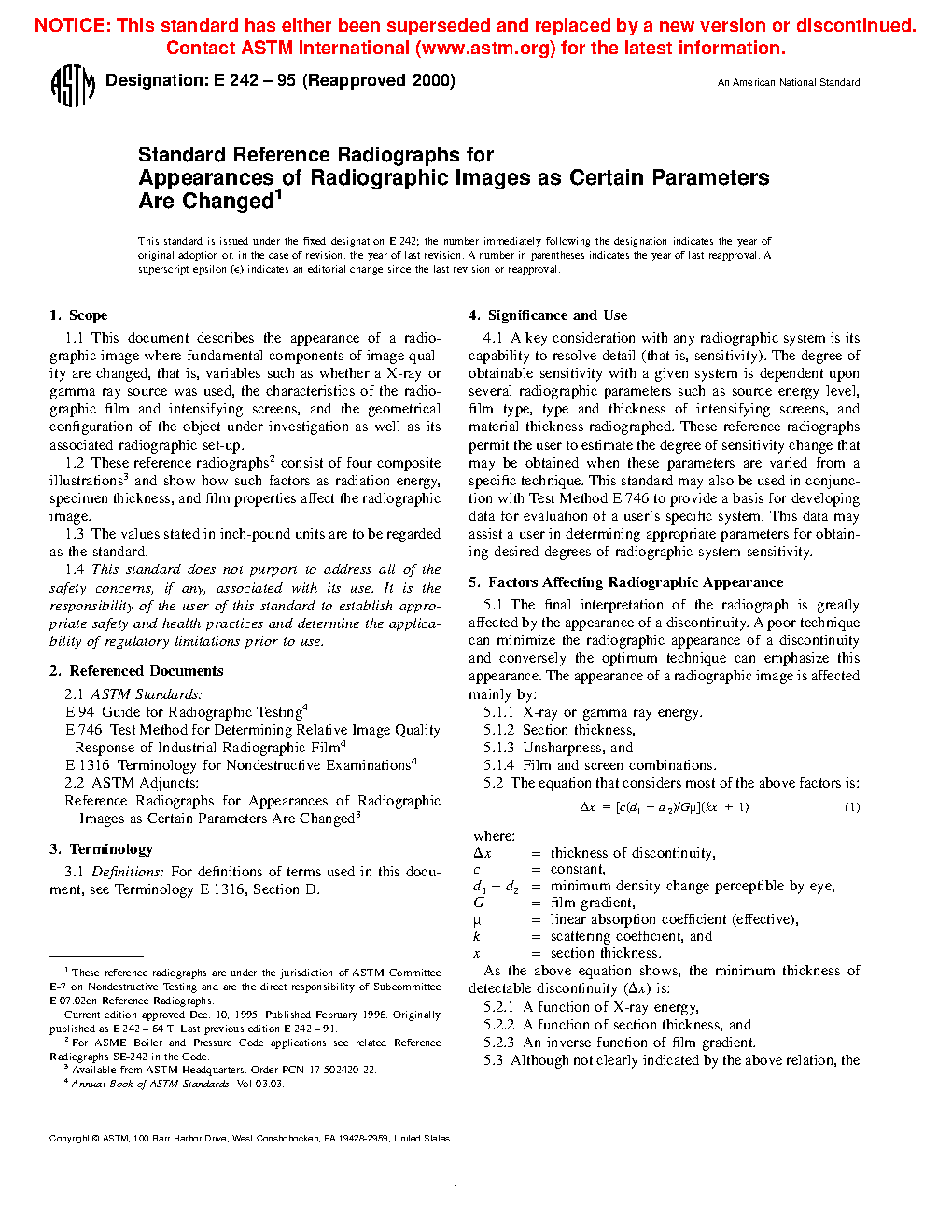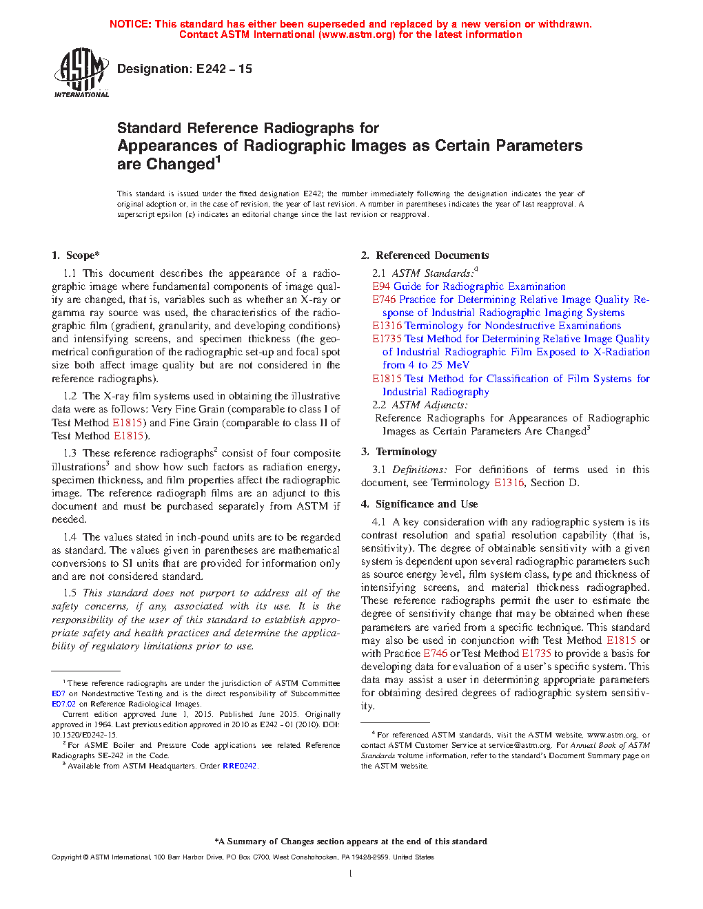 1.3 These reference radiographs2 consist of four composite illustrations3 and show how such factors as radiation energy, specimen thickness, and film properties affect the radiographic image. The reference radiograph films are an adjunct to this document and must be purchased separately from ASTM if needed.
