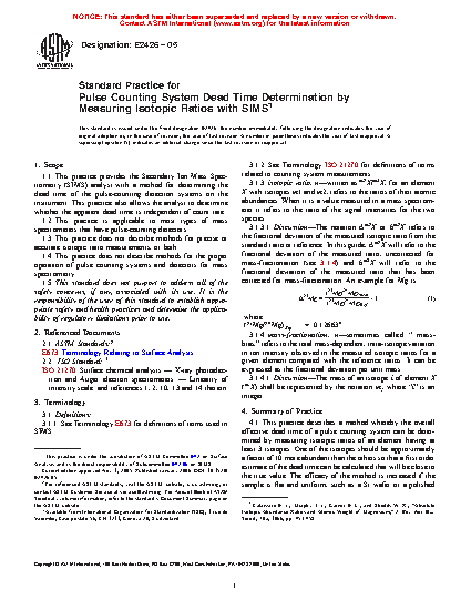 1.4 This practice does not describe methods for the proper operation of pulse counting systems and detectors for mass spectrometry.