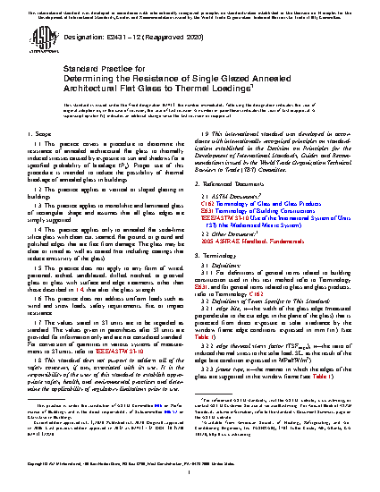 1.4 This practice applies only to annealed flat soda-lime silica glass with clean cut, seamed, flat ground, or ground and polished edges that are free from damage. The glass may be clear or tinted as well as coated (not including coatings that reduce emissivity of the glass).
