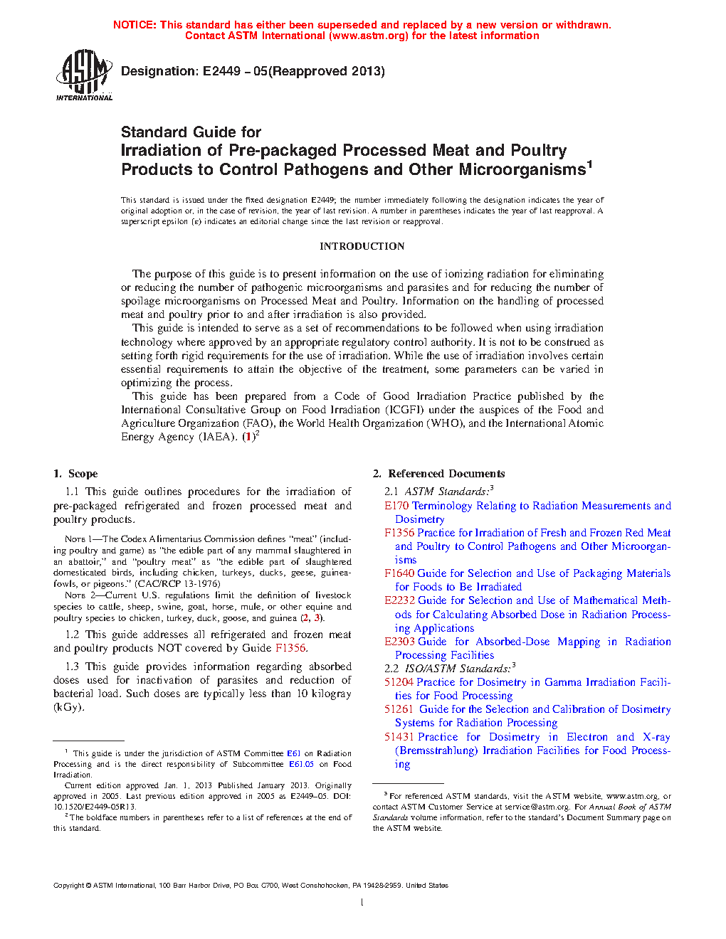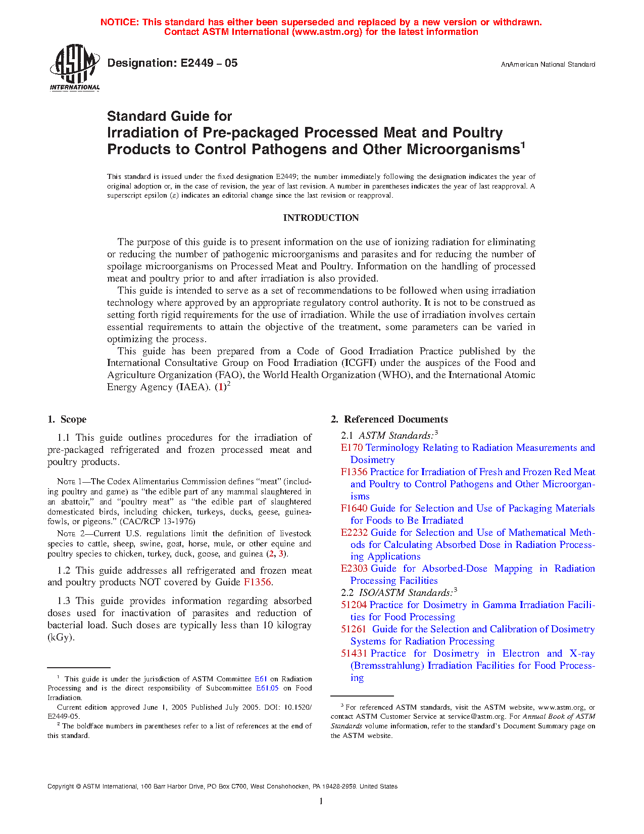 1.1 This guide outlines procedures for the irradiation of pre-packaged refrigerated and frozen processed meat and poultry products.