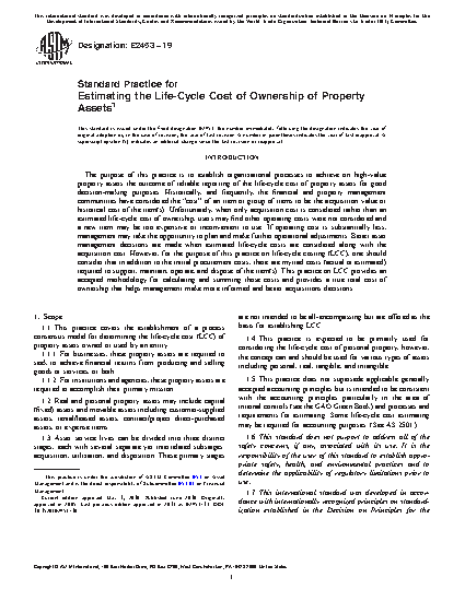 1.1 This practice covers the establishment of a process consensus model for determining the life-cycle cost (LCC) of property assets owned or used by an entity.