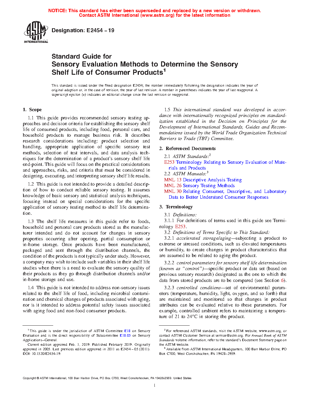 1.3 The shelf life measures in this guide refer to foods, household and personal care products stored as the manufacturer intended and do not account for changes in sensory properties occurring after opening, partial consumption/use or in-home storage. Once products have been manufactured, packaged and sent through the distribution channels, the condition of the products is not typically under study. However, a company may wish to include such variables in their shelf life studies when there is a need to evaluate the sensory quality of their products as they go through distribution channels and/or in-home storage and use.