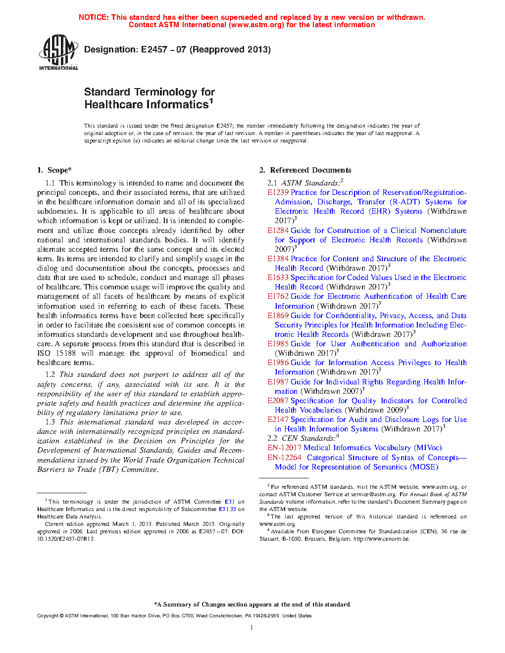 3.1 This standard vocabulary is intended to be used as a reference about terms used in standards for healthcare informatics and in general discussions about informatics issues relating to the healthcare sector, including: clinical care, resource management, policy, clinical or health services research or biomedical research in basic or applied areas of science that refer to the healthcare sector. It contains “Elected Terms” rather than the “Preferred” terms used in the terminologic literature. This is a usage coined within the CEN TC-251 community to reflect the fact that there is consensus agreement on the usage of a particular form rather than an imposition. This consensual agreement to usage better reflects the incentives for common usage rather than mandates. Alternate forms (Synonymy) of an elected term exist and are cataloged for the same concept, in accordance with ISO/DIS 1087-1, ISO 704, ISO 12620, and EN-12017, ISO/DIS 860, EN-12264, and ANSDIT.
