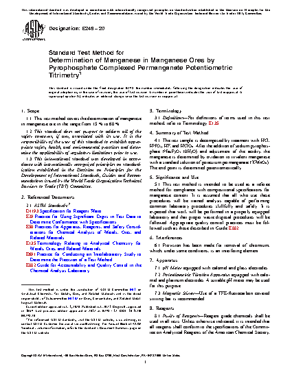 1.1 This definitive test method covers the determination of manganese in manganese ore in the range from 15 to 60 %.