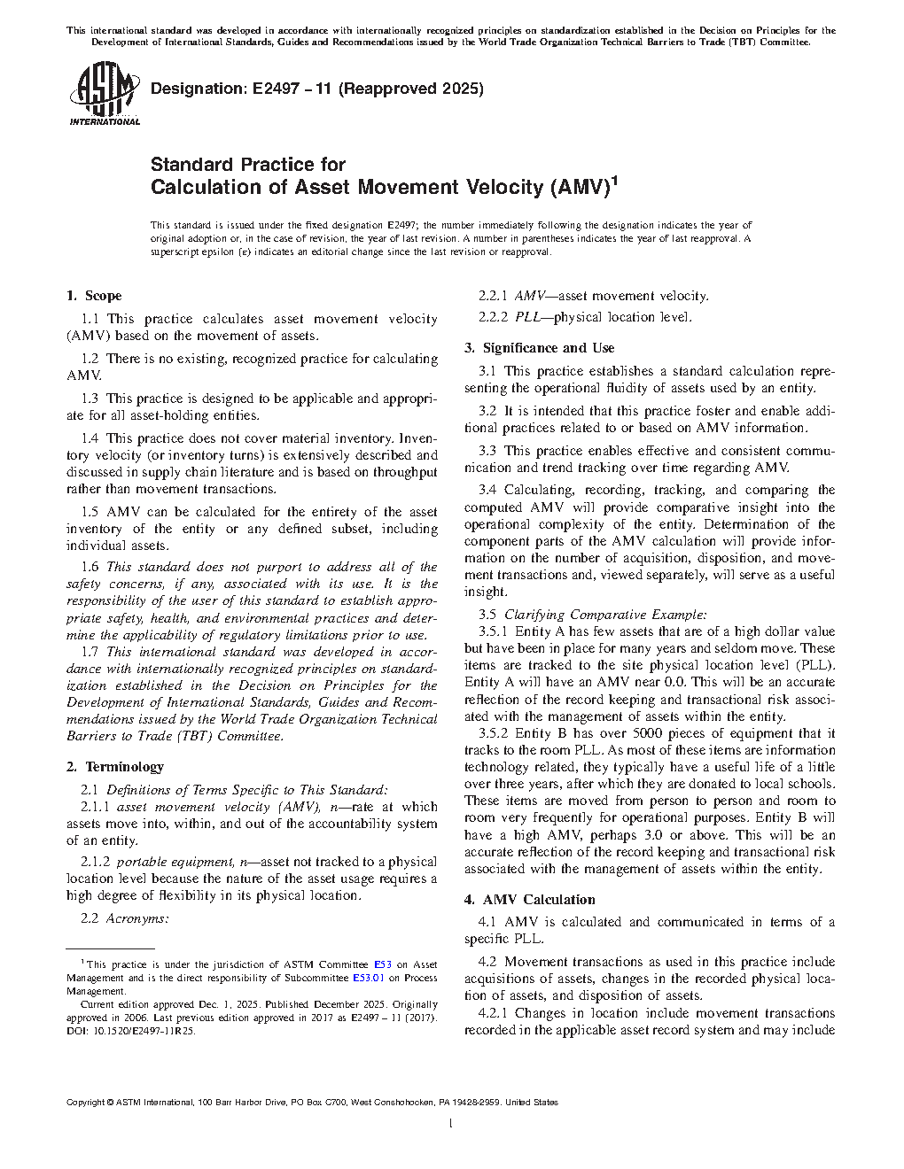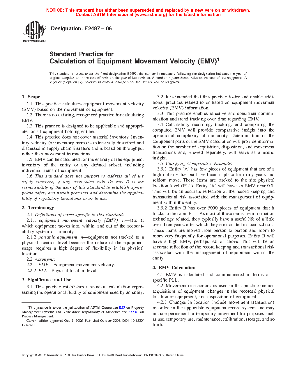 1.1 This practice calculates equipment movement velocity (EMV) based on the movement of equipment.