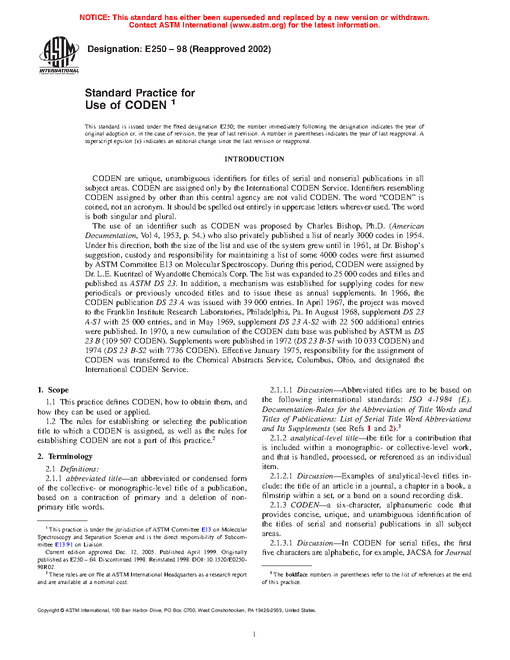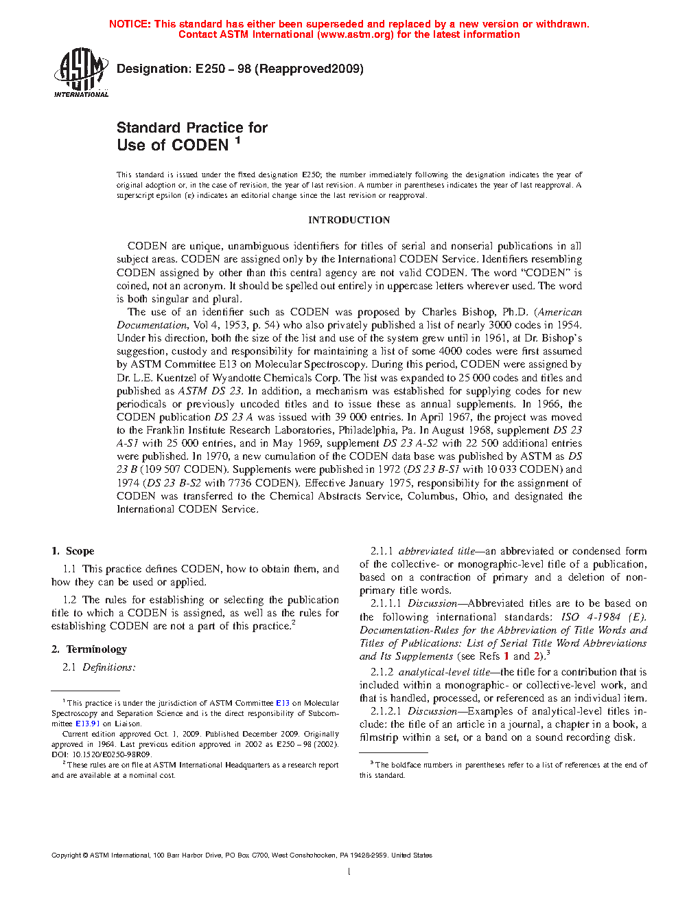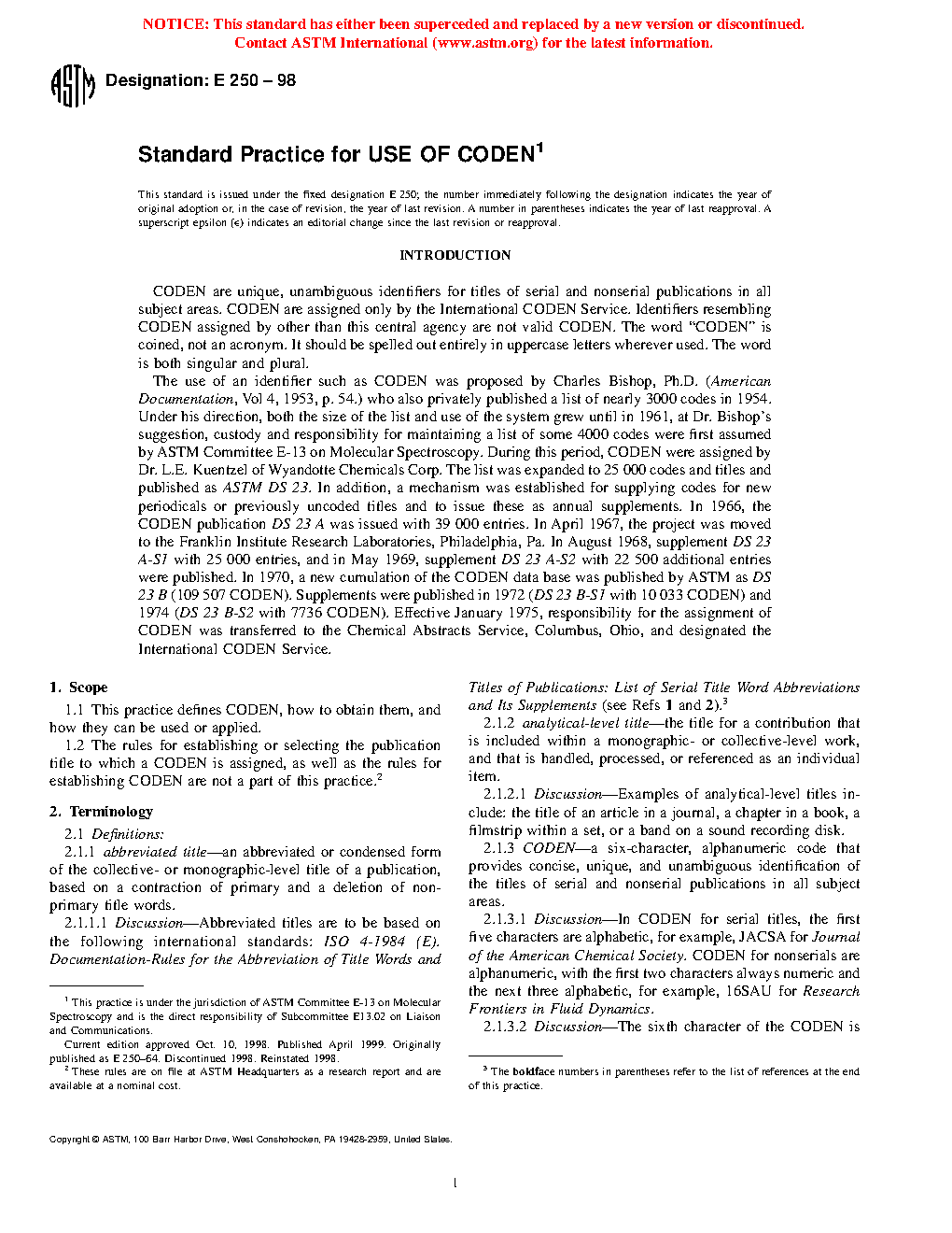 Standard Practice for Use of CODEN (Withdrawn 2014)
