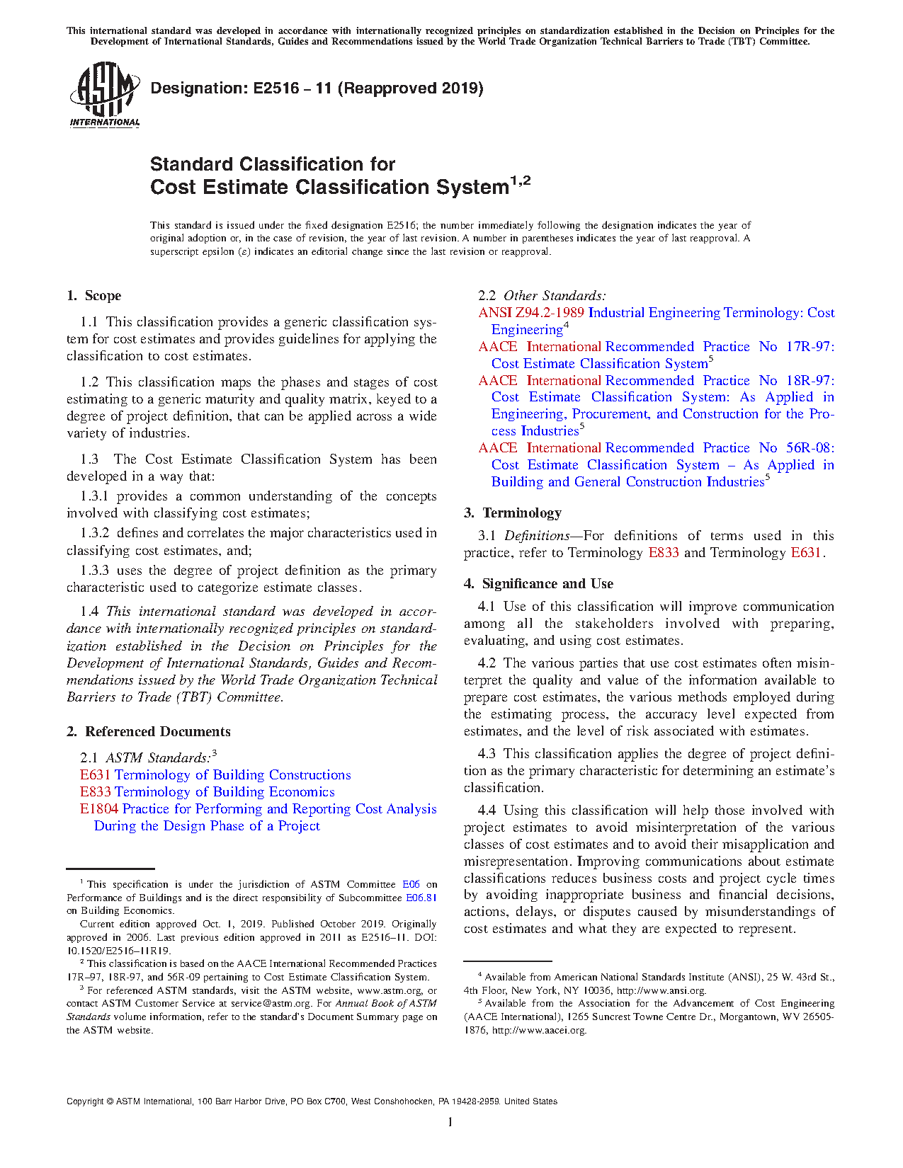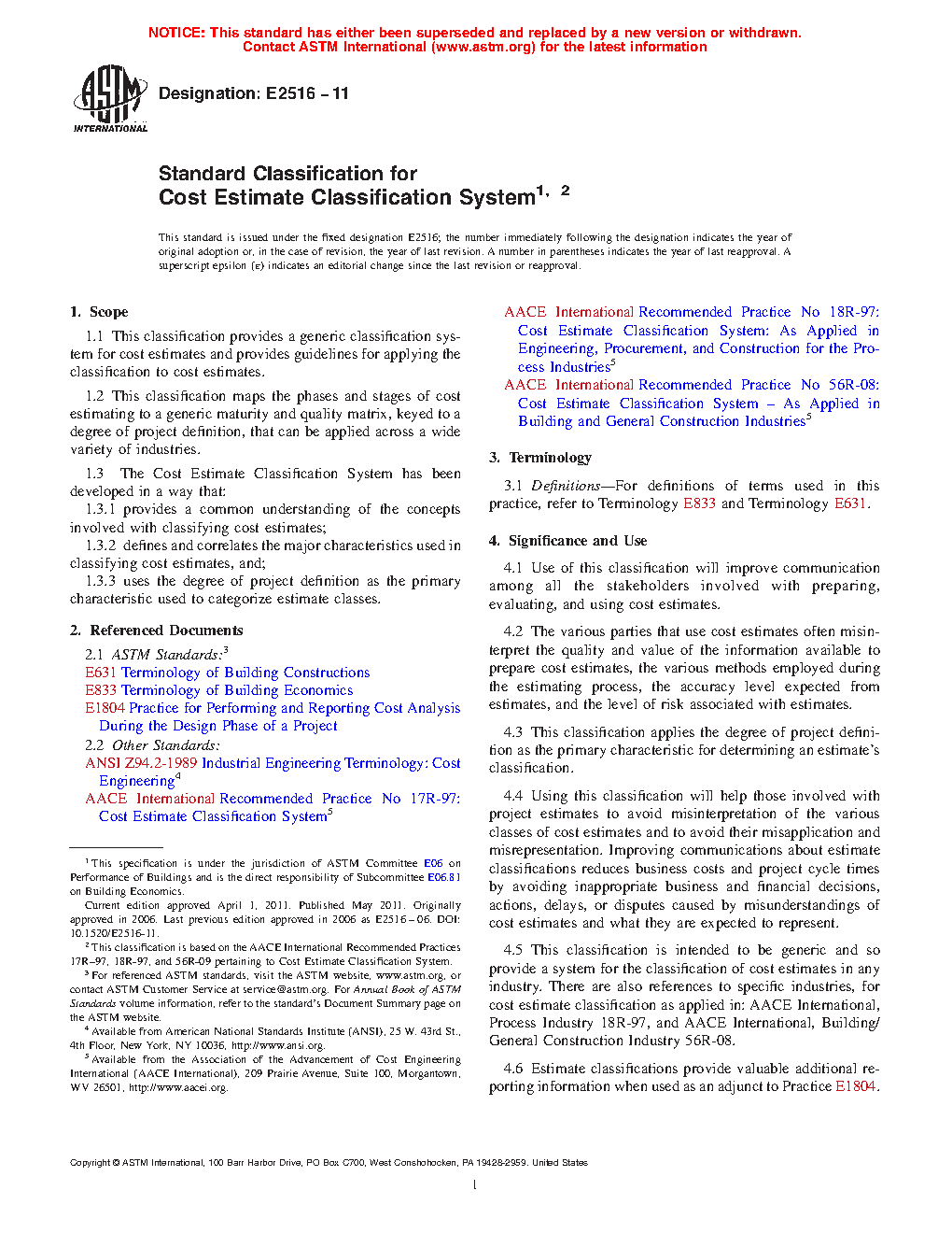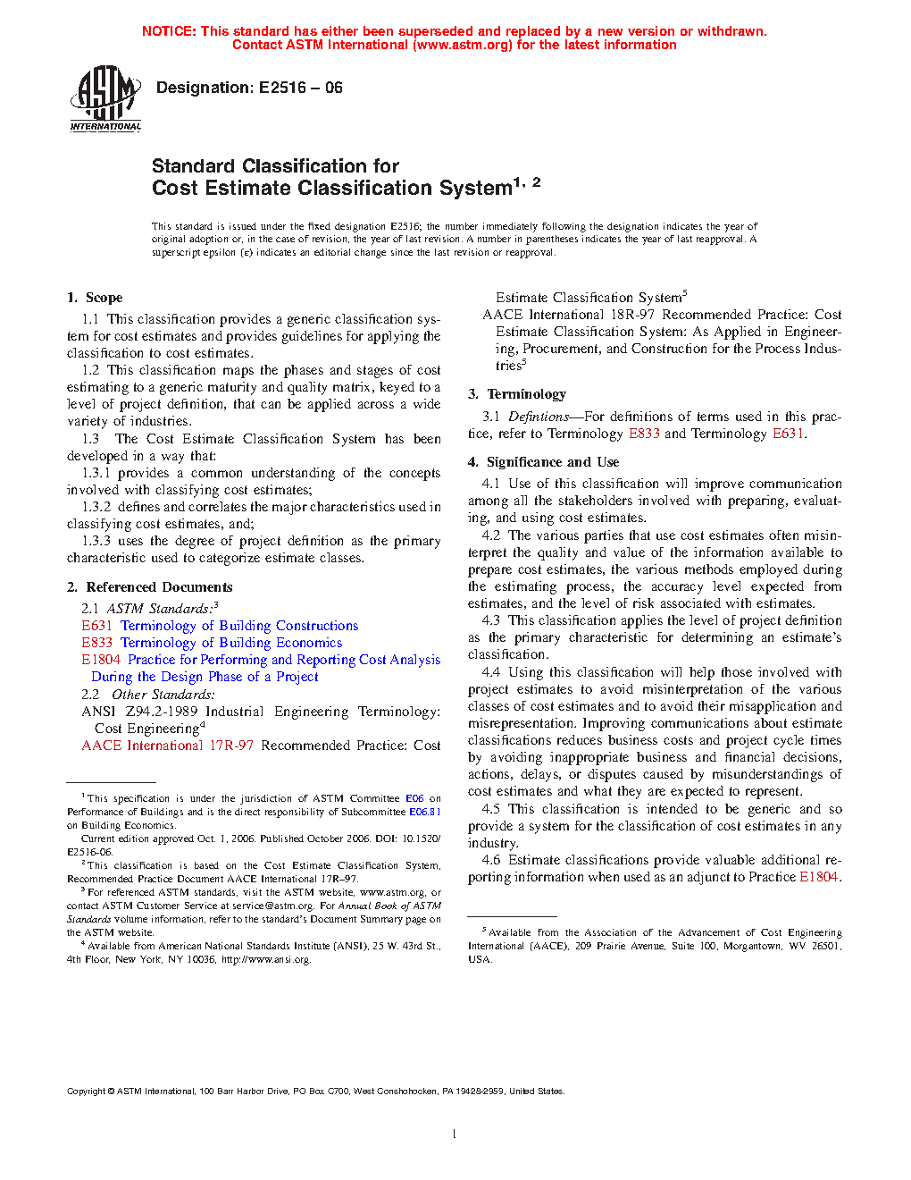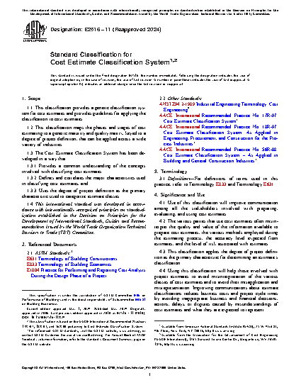 1.1 This classification provides a generic classification system for cost estimates and provides guidelines for applying the classification to cost estimates.