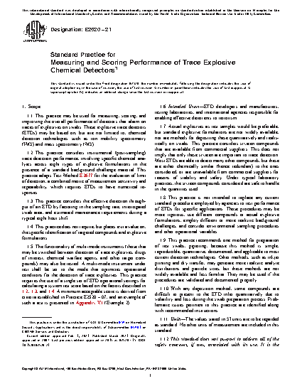 1.2 This practice considers instrumental (post-sampling) trace detection performance, involving specific chemical analytes across eight types of explosive formulations in the presence of a standard background challenge material. This practice adapts Test Method E2677 for the evaluation of limit of detection, a combined metric of measurement sensitivity and repeatability, which requires ETDs to have numerical responses.