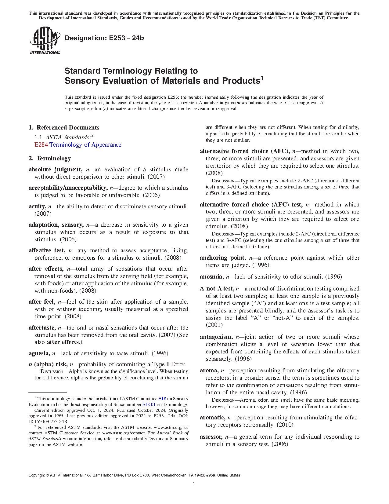 Standard Terminology Relating to Sensory Evaluation of Materials and Products