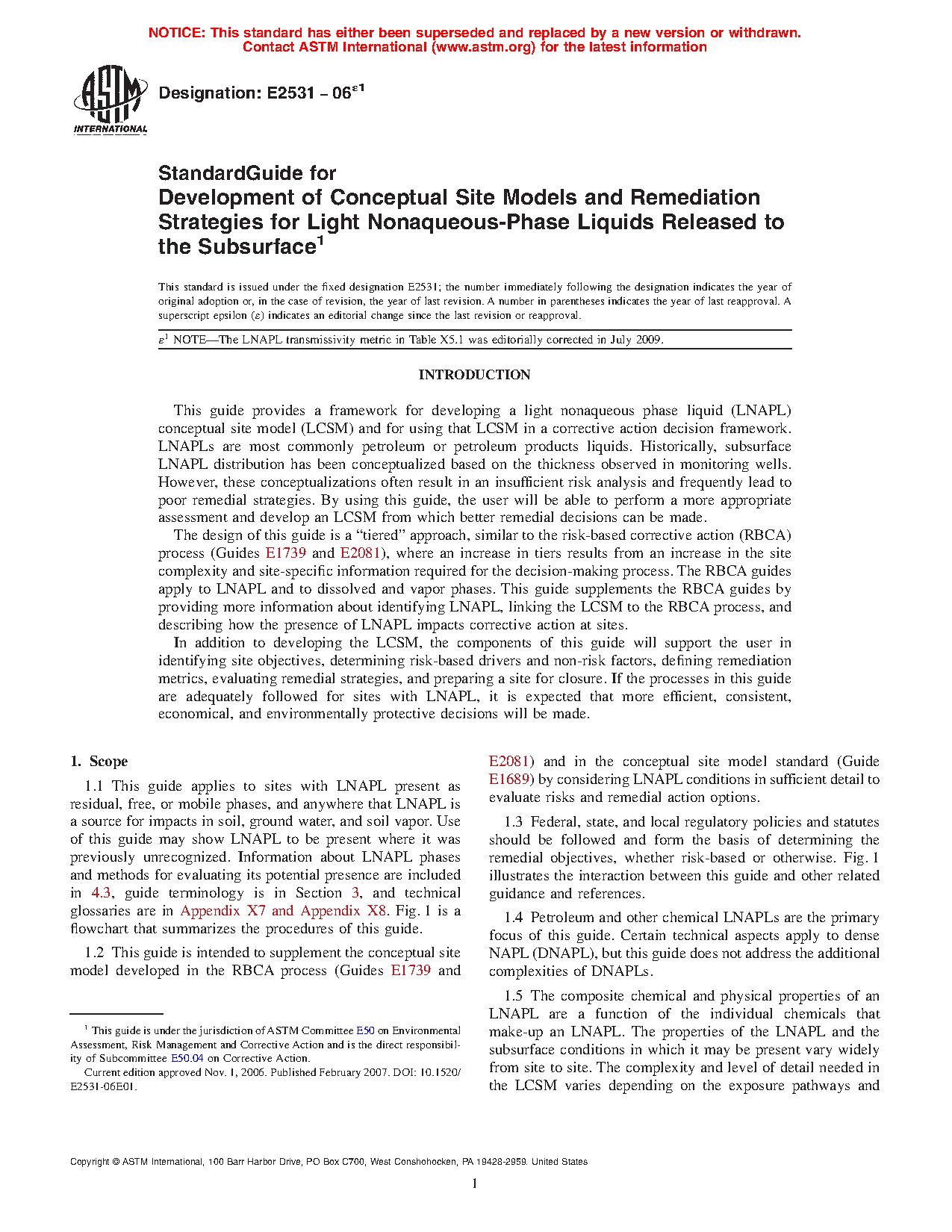 1.2 This guide is intended to supplement the conceptual site model developed in the RBCA process (Guides E1739 and E2081) and in the conceptual site model standard (Guide E1689) by considering LNAPL conditions in sufficient detail to evaluate risks and remedial action options.