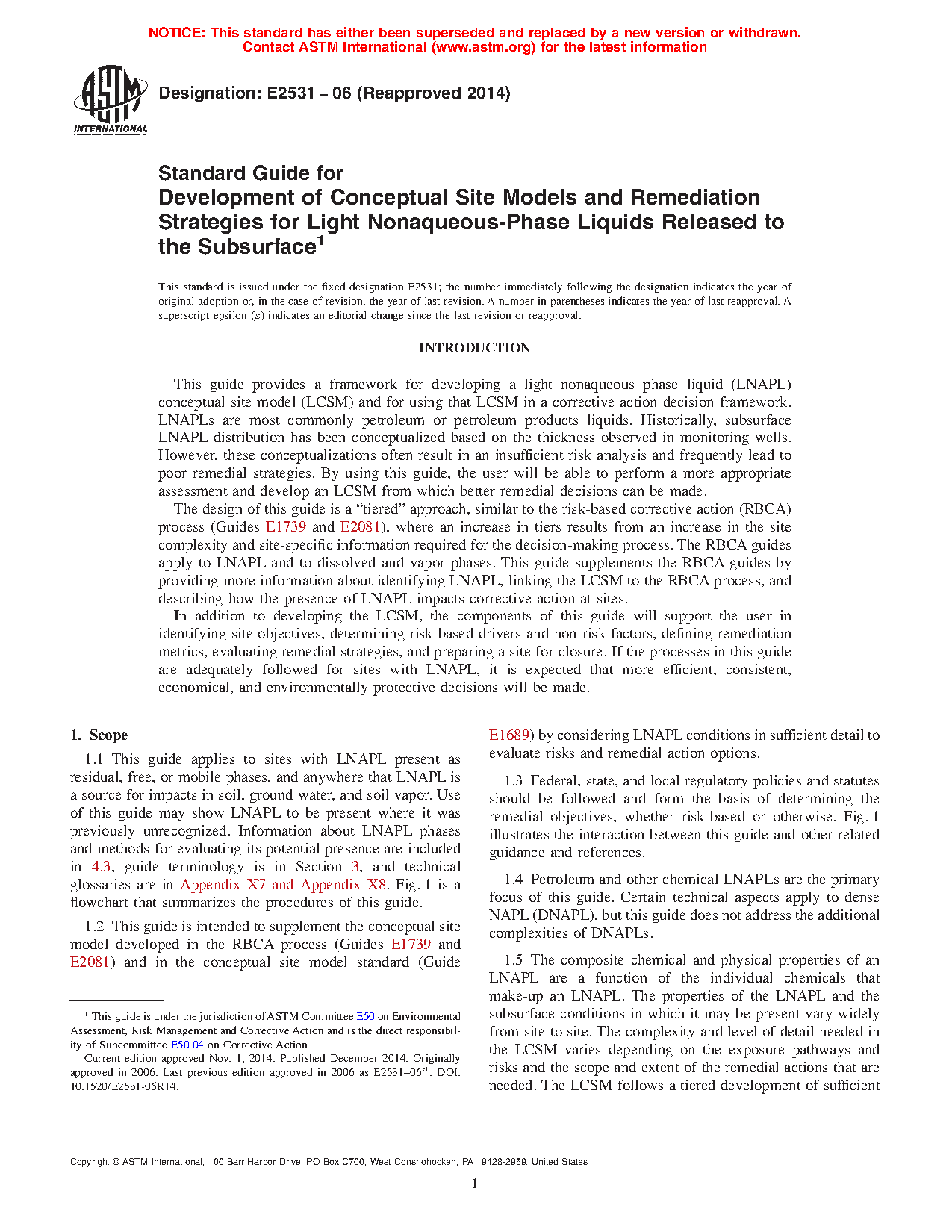 1.5 The composite chemical and physical properties of an LNAPL are a function of the individual chemicals that make-up an LNAPL. The properties of the LNAPL and the subsurface conditions in which it may be present vary widely from site to site. The complexity and level of detail needed in the LCSM varies depending on the exposure pathways and risks and the scope and extent of the remedial actions that are needed. The LCSM follows a tiered development of sufficient detail for risk assessment and remedial action decisions to be made. Additional data collection or technical analysis is typically needed when fundamental questions about the LNAPL cannot be answered with existing information.