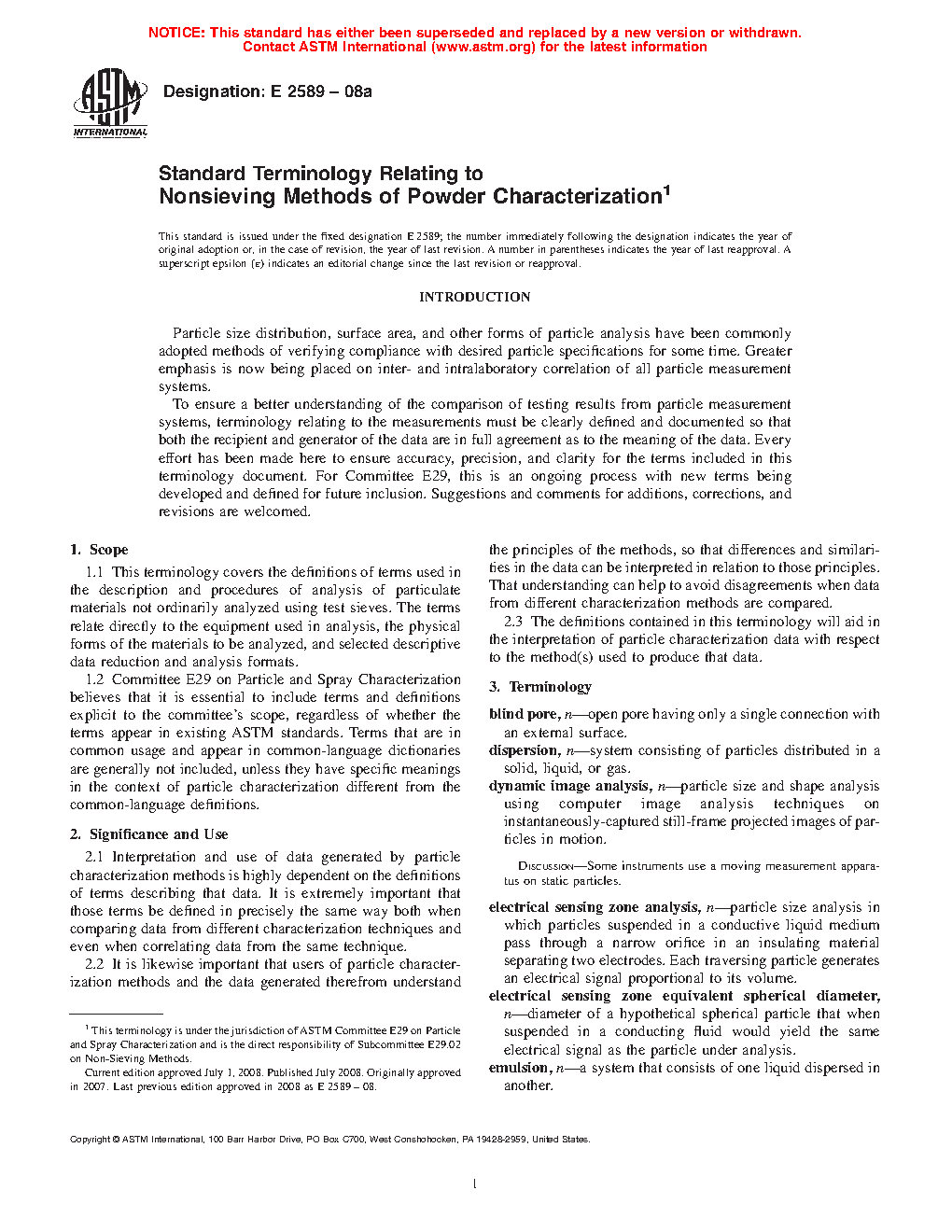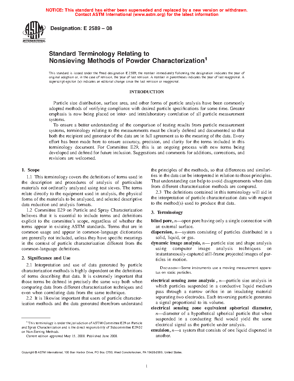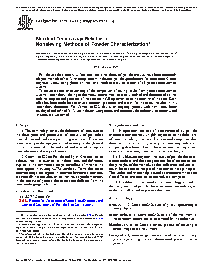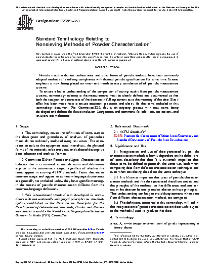 1.2 Committee E29 on Particle and Spray Characterization believes that it is essential to include terms and definitions explicit to the committee’s scope, regardless of whether the terms appear in existing ASTM standards. Terms that are in common usage and appear in common-language dictionaries are generally not included, unless they have specific meanings in the context of particle characterization different from the common-language definitions.