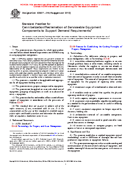 1.1 This practice covers the process by which open production and failure related demand requirements are fulfilled using existing equipment components.