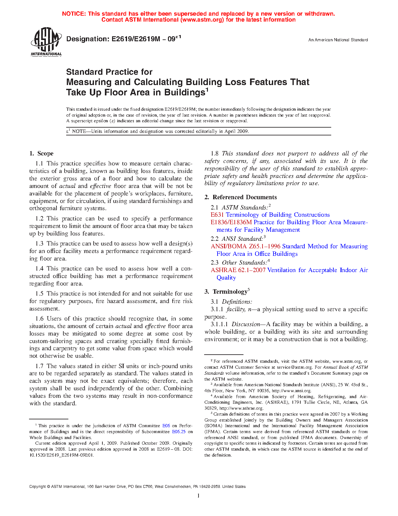 1.2 This practice can be used to specify a performance requirement to limit the amount of floor area that may be taken up by building loss features.