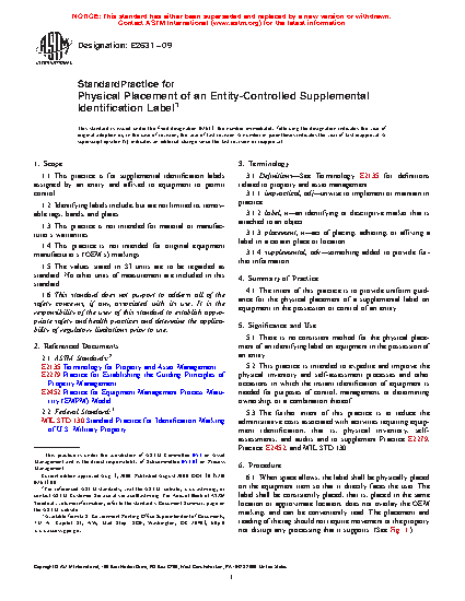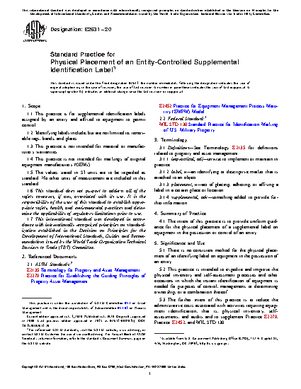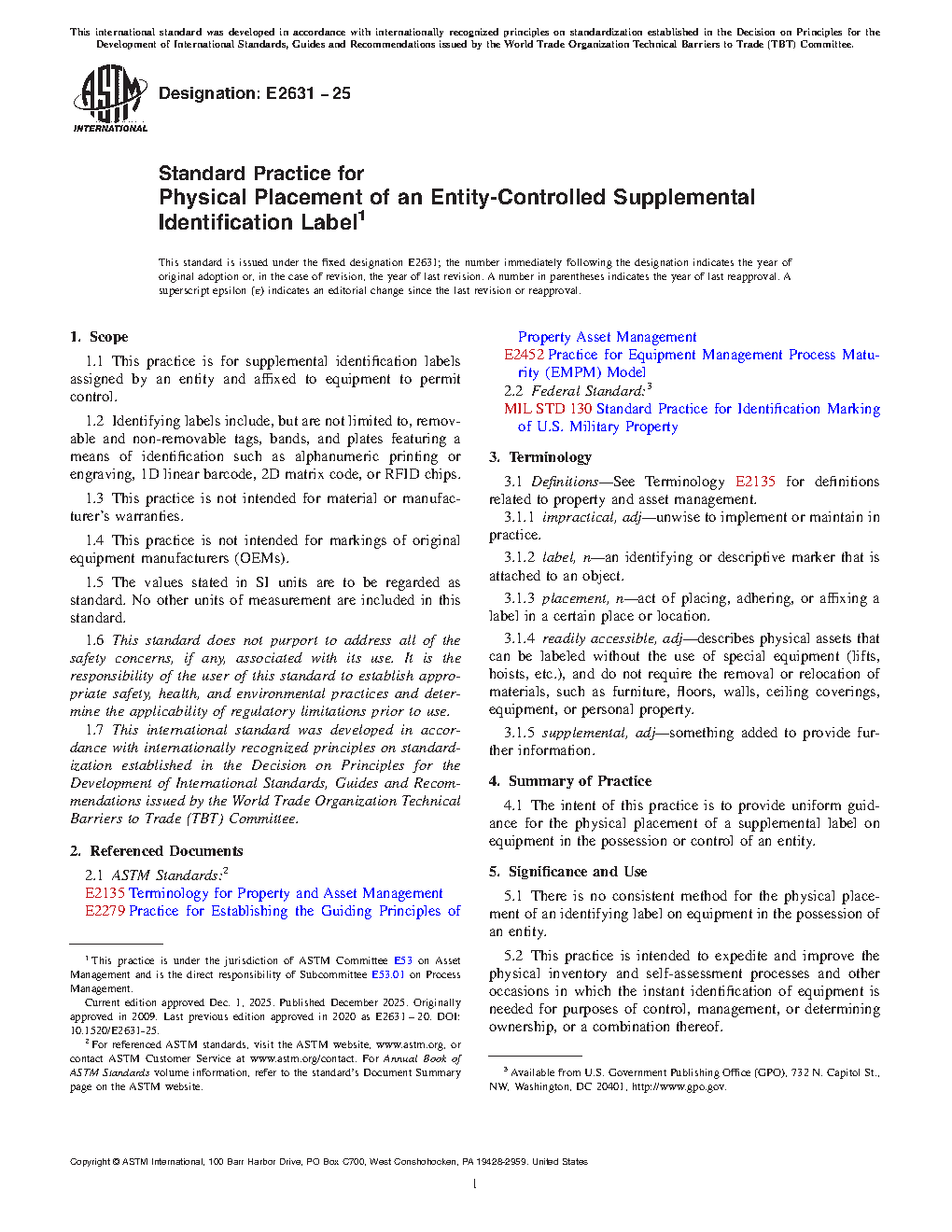 1.1 This practice is for supplemental identification labels assigned by an entity and affixed to equipment to permit control.