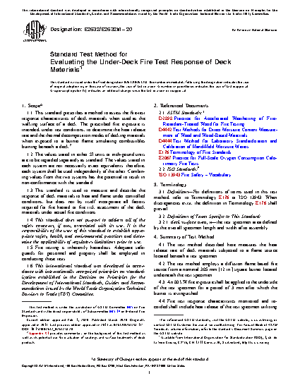 5.1 This test method addresses the suitability of deck materials by assessing their response to fire hazards associated with sources of flame located beneath the deck material.