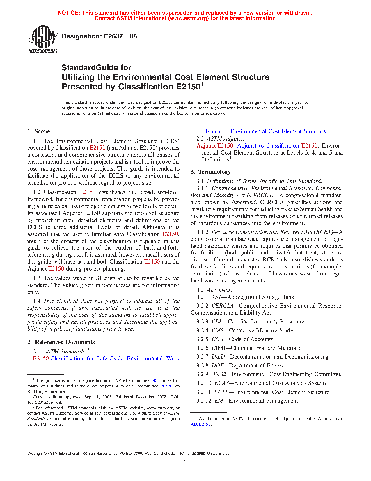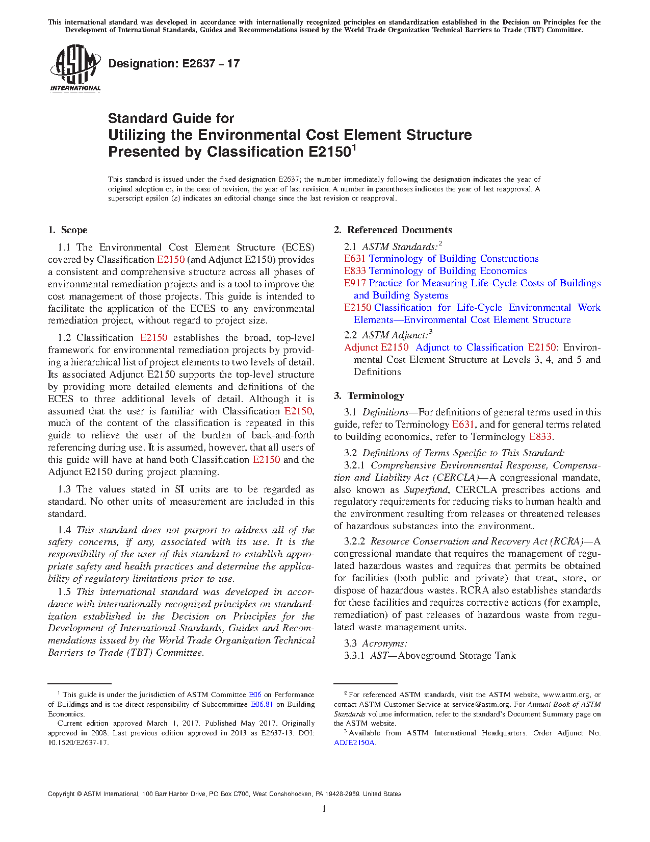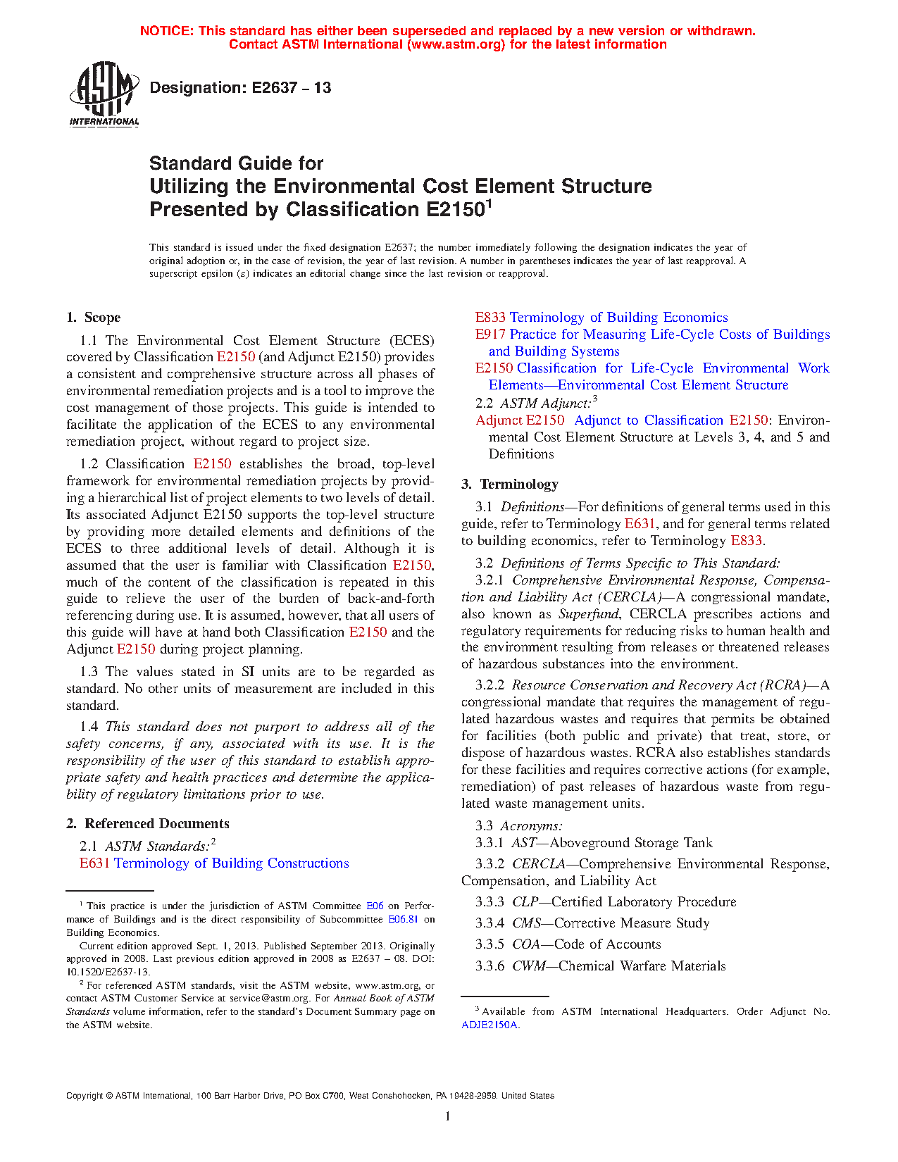 1.1 The Environmental Cost Element Structure (ECES) covered by Classification E 2150