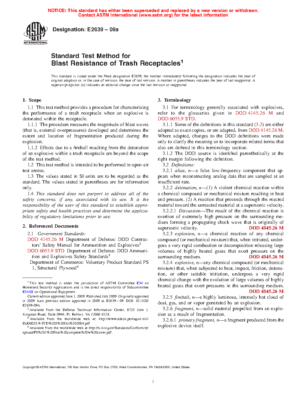 1.1.3 Effects due to a fireball resulting from the detonation of an explosive within a trash receptacle are beyond the scope of the test method.
