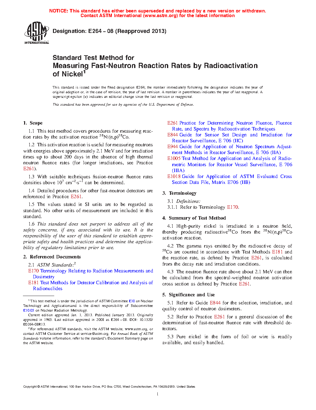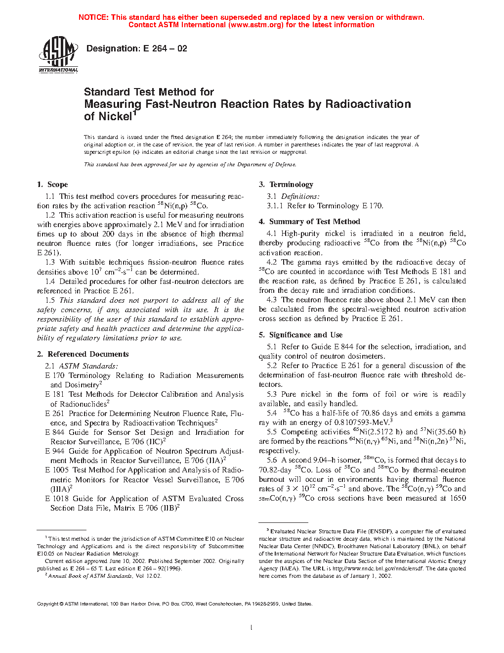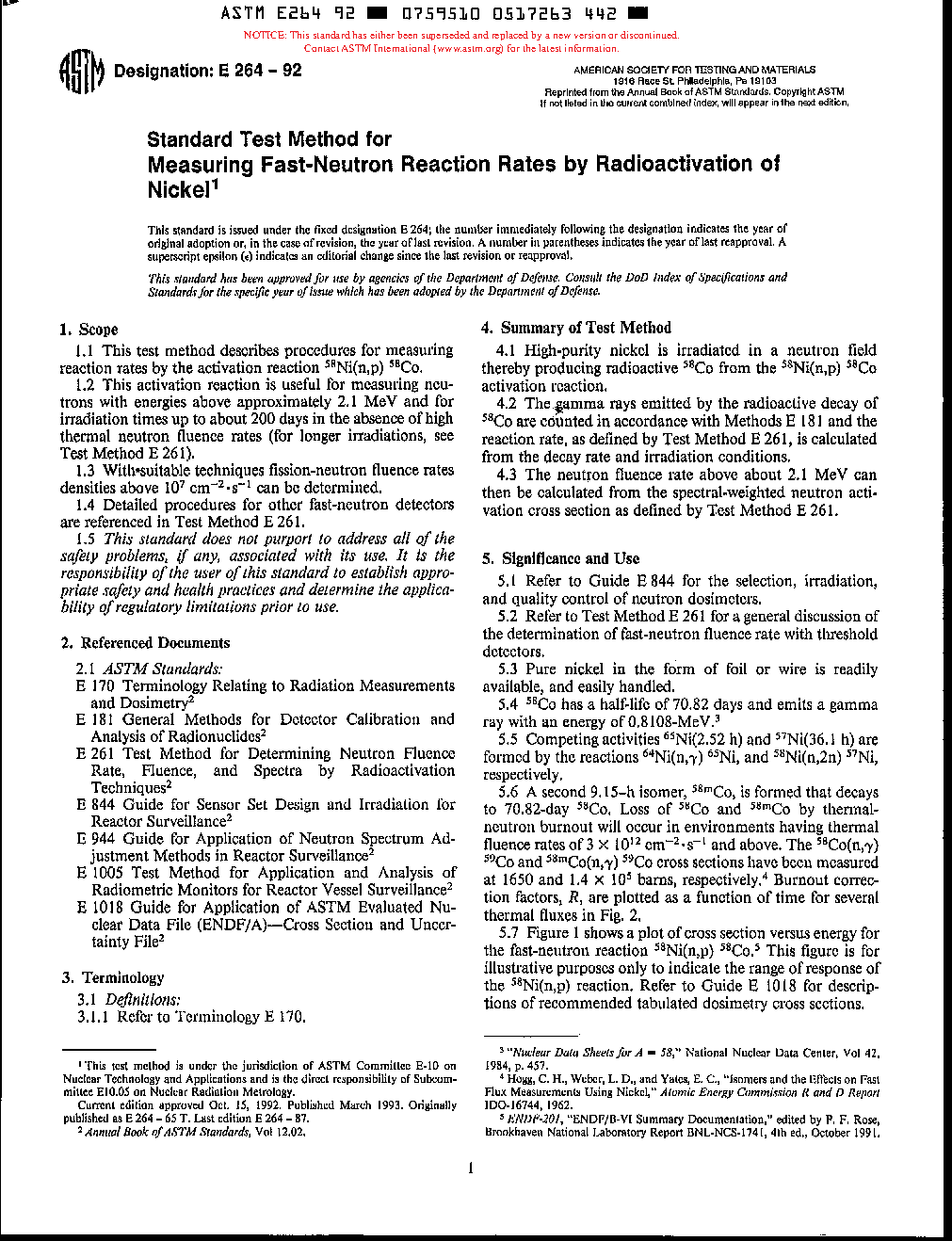 Standard Test Method for Measuring Fast-Neutron Reaction Rates by Radioactivation of Nickel